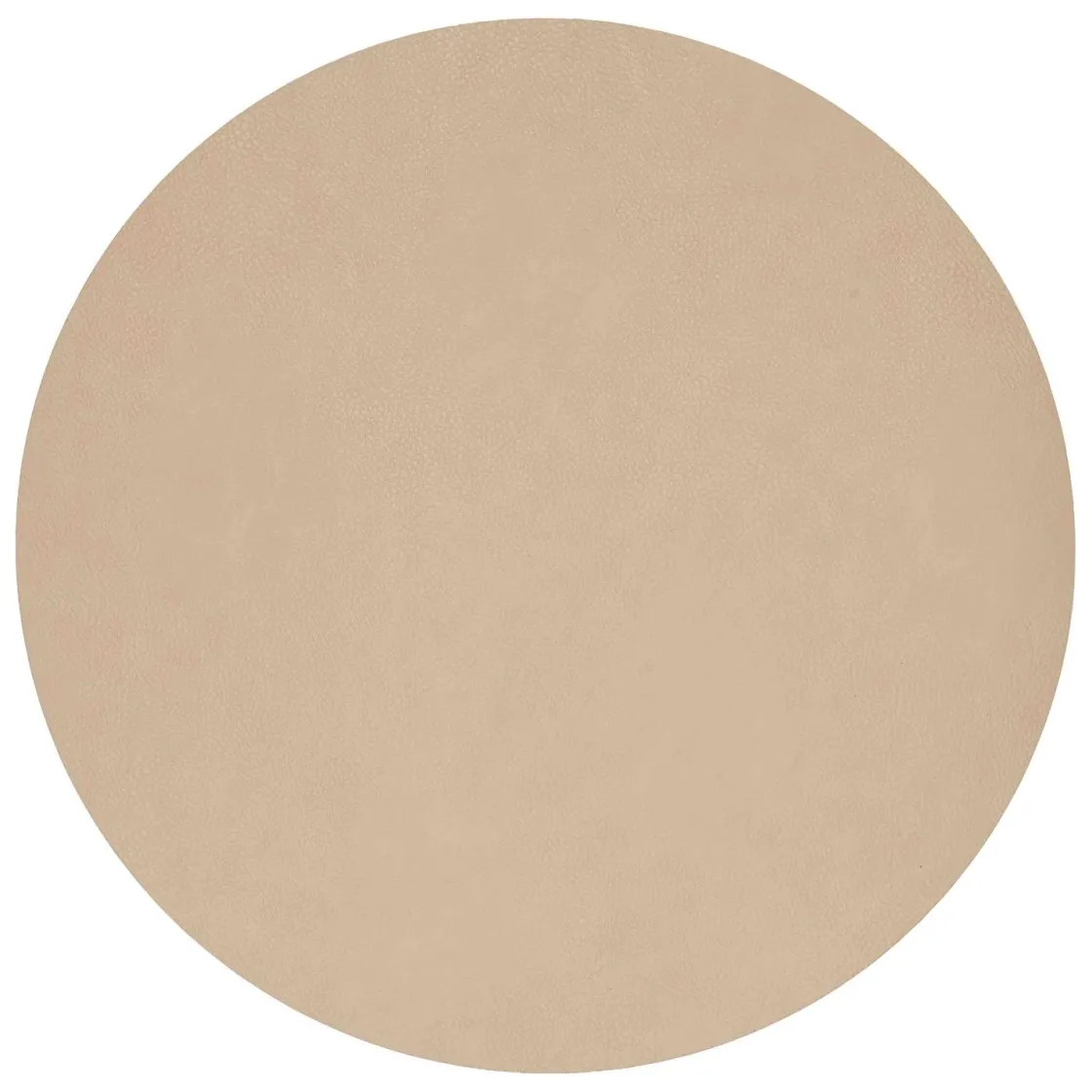 Beige dekkebrikke med rund form og rolig uttrykk. Overflaten i imitert skinn er lett å tørke av, og fargen passer like fint til hverdags som til selskap. Kombiner gjerne med linservietter og servise i keramikk for en myk og innbydende borddekking.