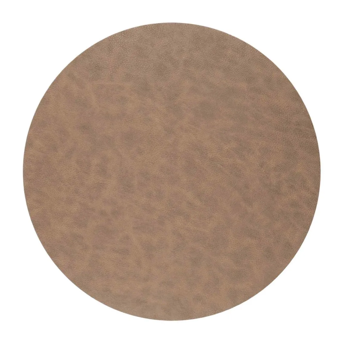 Rund dekkebrikke som gir borddekkingen det lille ekstra. Laget i imitert skinn og tilgjengelig i , er disse brikkene enkle å holde rene og passer til enhver anledning.