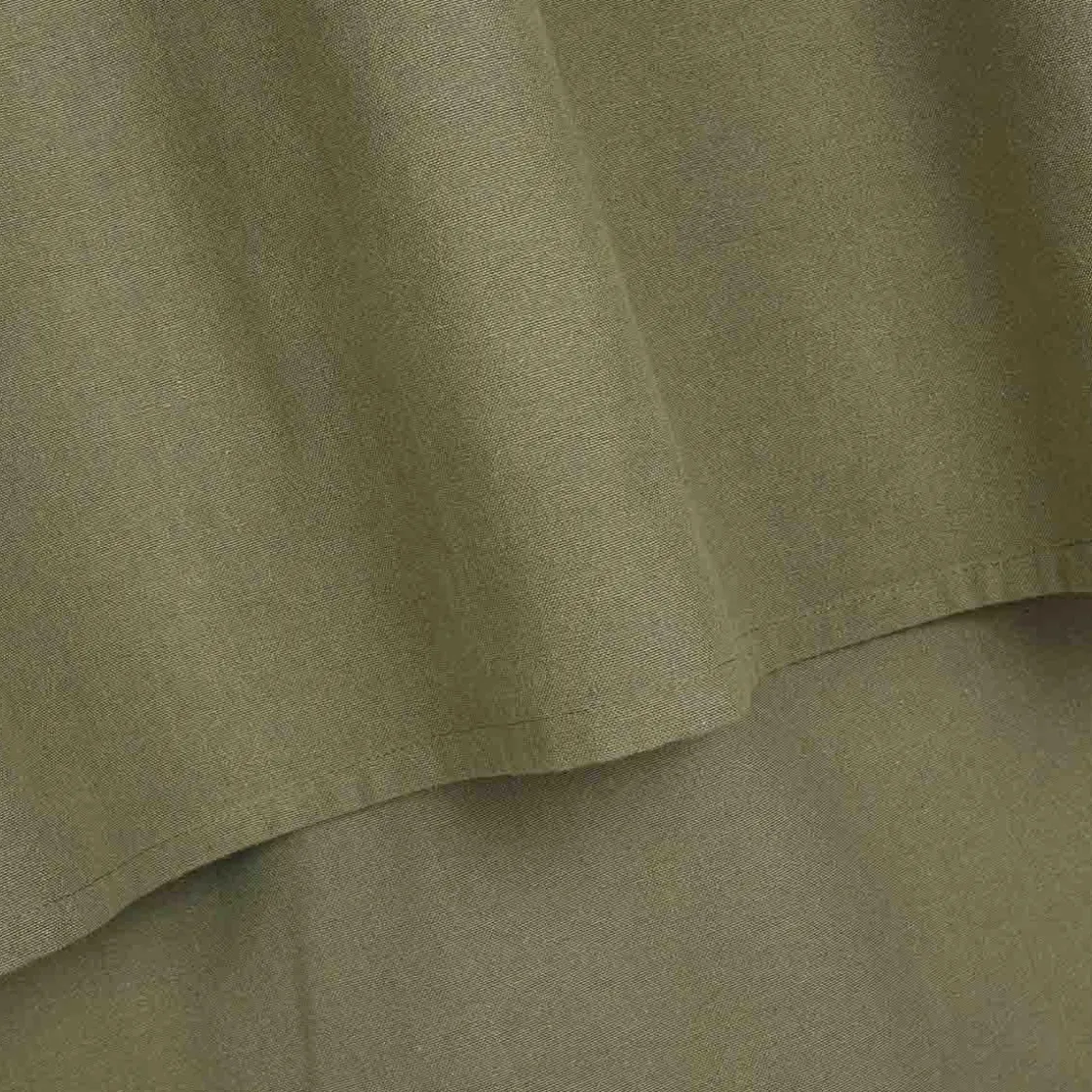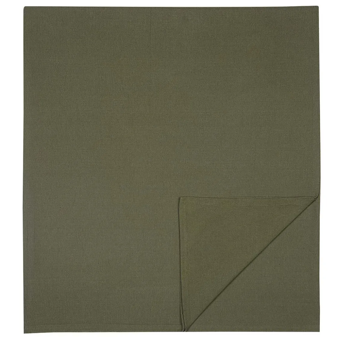 Ensfarget duk i en stødig og lun grønntone, i bomull, som faller pent over bordkanten. Like fin til hverdagens middager som til helgens små sammenkomster. Matcher enkelt med servise i nøytrale toner, men gir også god kontrast til blomster og levende lys.