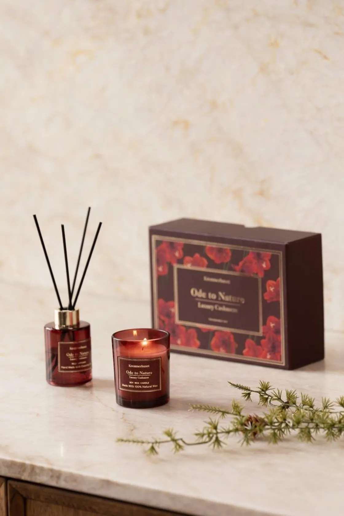 Et elegant gavesett med romduft og duftlys i serien Ode to Nature – Luxury Cashmere. Den varme duften passer perfekt når du vil skape en lun stemning hjemme, eller gi bort noe som gleder lenge. Kommer i dekorativ gaveeske.