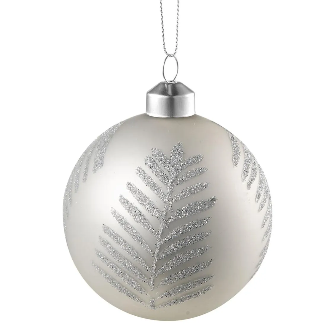 En nydelig julekule med glitter detaljer av blader som er fantastisk fin på juletreet. Et tips er å kombinere ulike farger og mønstre på julekulene for å skape et personlig og unikt juletre! kommer også i brun, grønn og gull, og de er flotte å kombinere sammen.