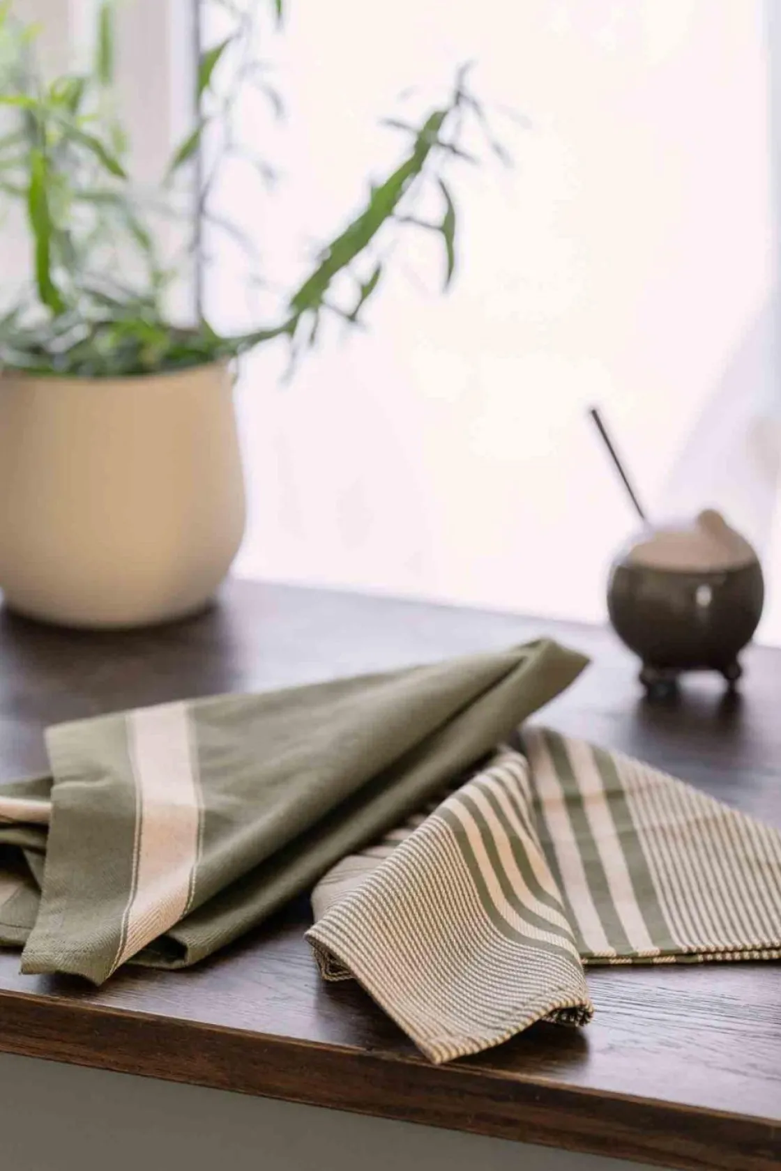 Kjøkkenhåndkleet i friske grønne nyanser med striper i bomull er perfekt for å tørke oppvasken og tilføre kjøkkenet ditt et friskt preg.