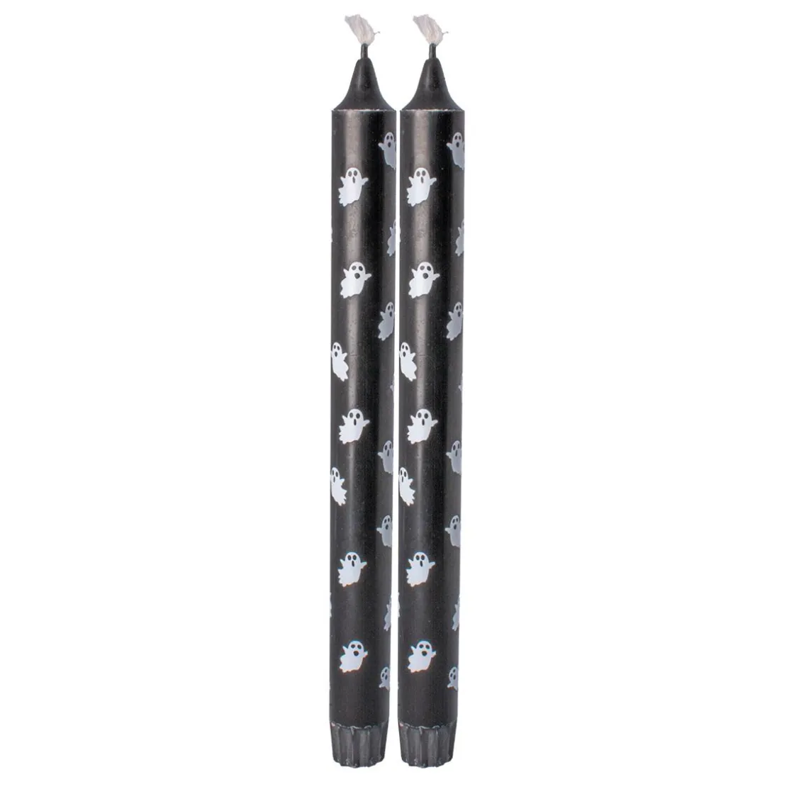 To svarte kronelys pyntet med små, hvite spøkelser – perfekt til halloweenbordet. Gir en leken stemning samtidig som du bevarer den koselige atmosfæren med levende lys. Passer perfekt sammen med .