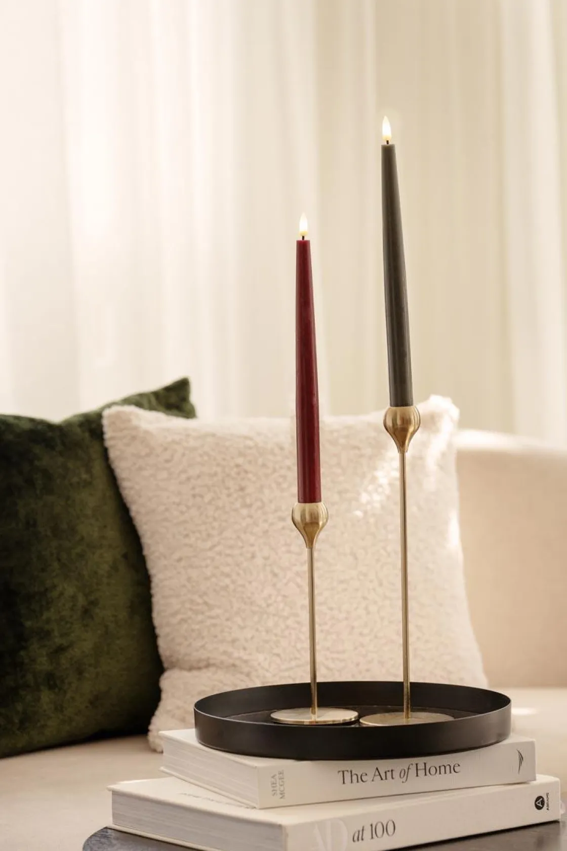 En tidløs lysestake i gullfarget metall som passer inn i både klassiske og moderne hjem. Den gjør seg godt alene, men blir ekstra stemningsfull i kombinasjon med andre og . Plasser den på et av våre dekorative sammen med eller for et helhetlig uttrykk.