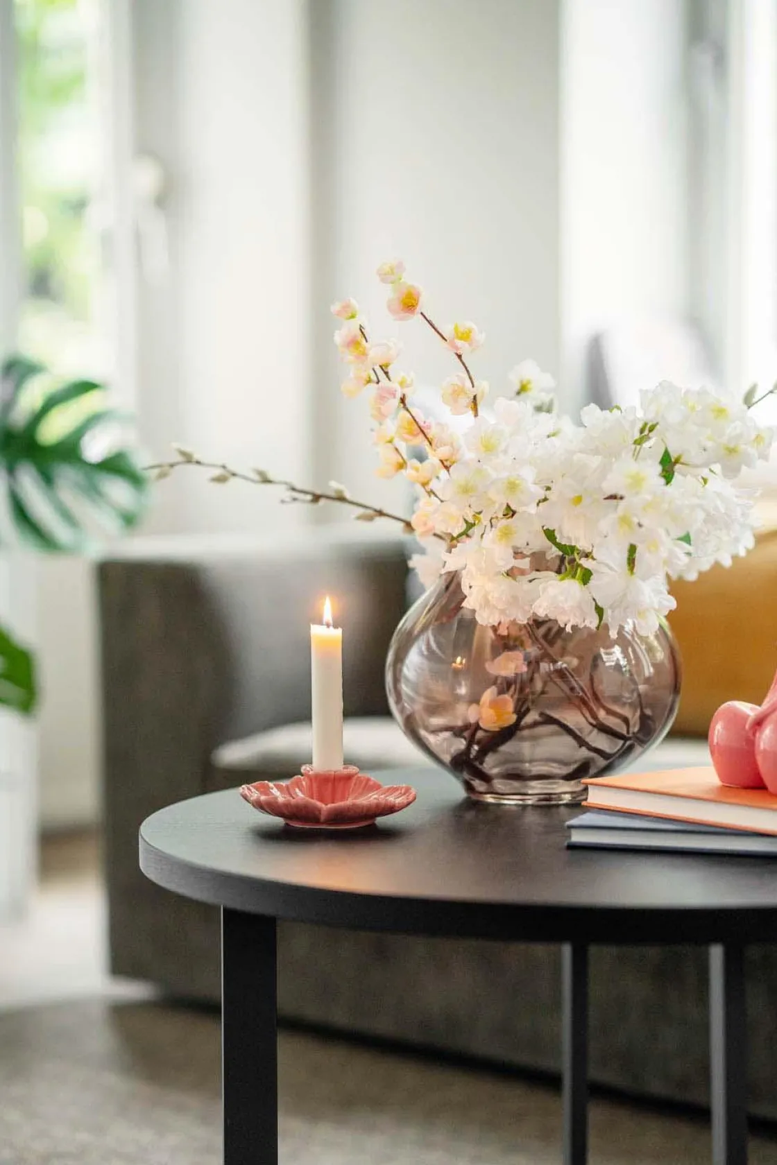 Lysestaken som er formet som en blomst, gir bordet et mykt og varmt uttrykk. Den rosa finishen passer perfekt til både moderne og klassiske omgivelser. Passer godt med andre og i samme fargetoner.