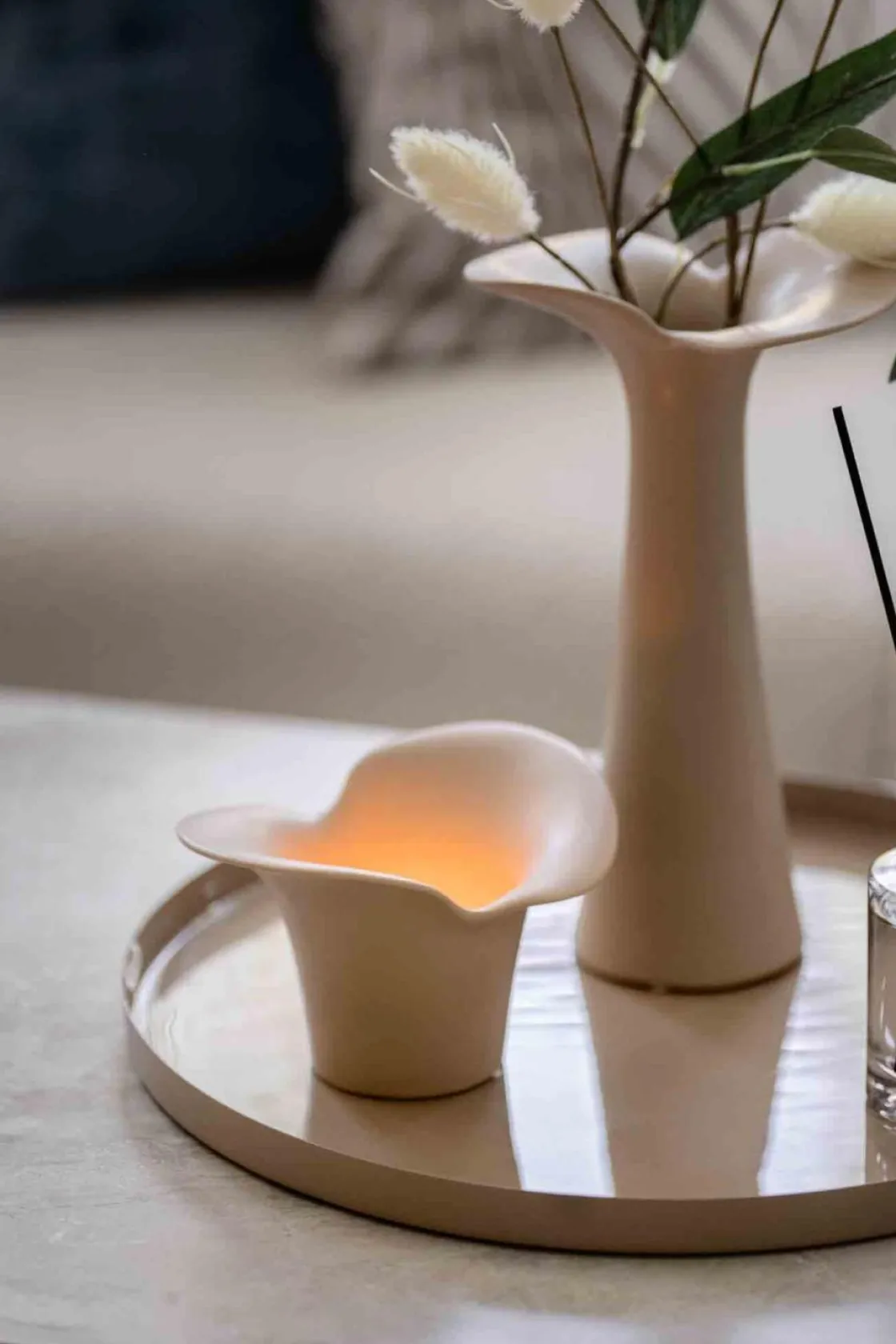 Elegant lysfat i metall med blank innside og matt utside. Her kan du leke deg med ulike kombinasjoner for et . Bruk lys i lysestaker eller lysholdere sammen med potter eller vaser for å variere høyden. Lysfatet vil på en stilfull måte ramme inn detaljene.