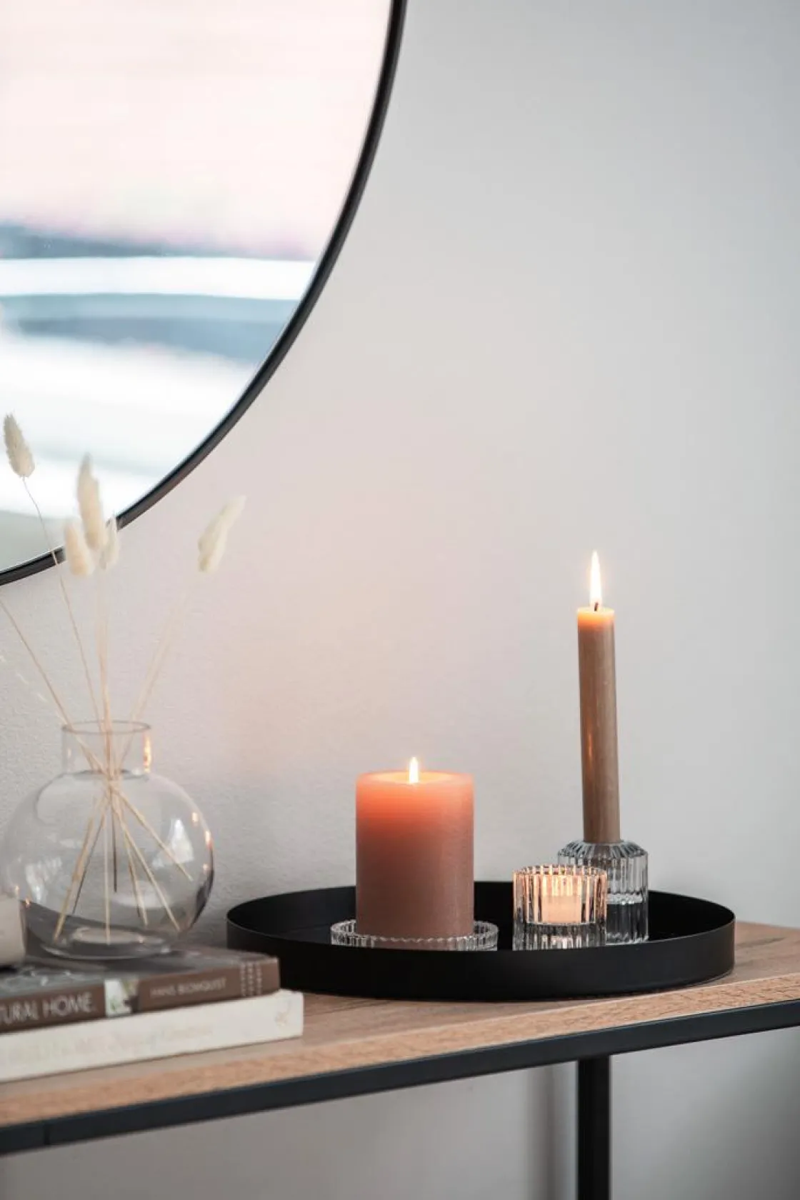 Lite lysfat som passer perfekt til et . Lekker riller i bunn og kant. Kult å kombinere med små for telys eller kronelys og samle på et bord.