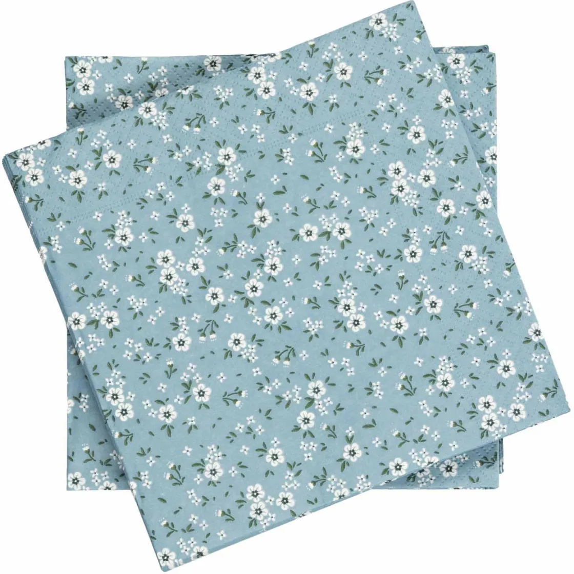 Kvadratisk papirserviett med mønster av nydelig små, blå vårblomster. Nydelig å dekke festbordet med!