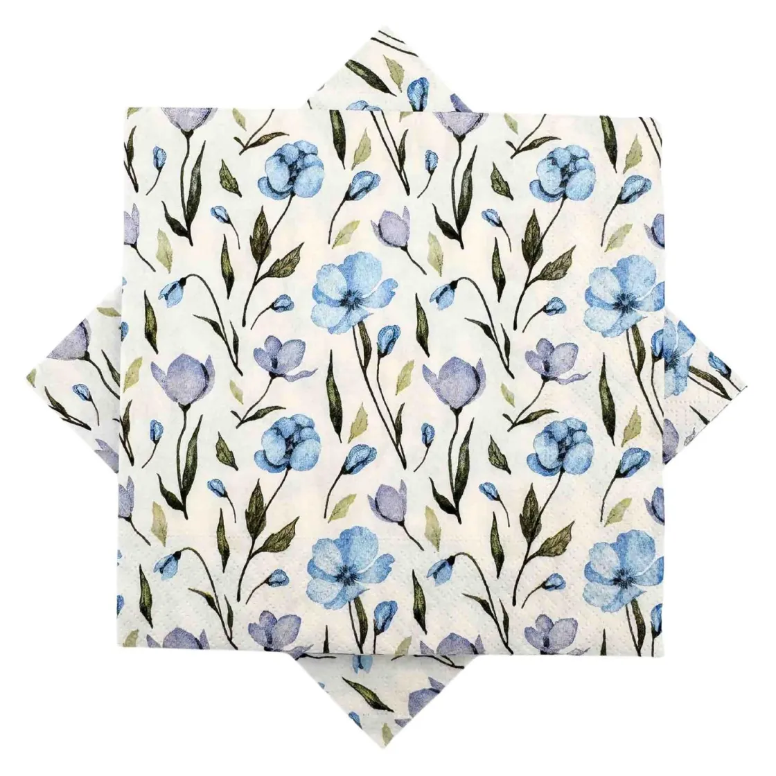 Serviettene med et delikat blomsterprint i blått og grønt kan sette en fin ramme rundt bordet ditt. Mønsteret har en lett og naturlig følelse, perfekt til en middag eller feiring.