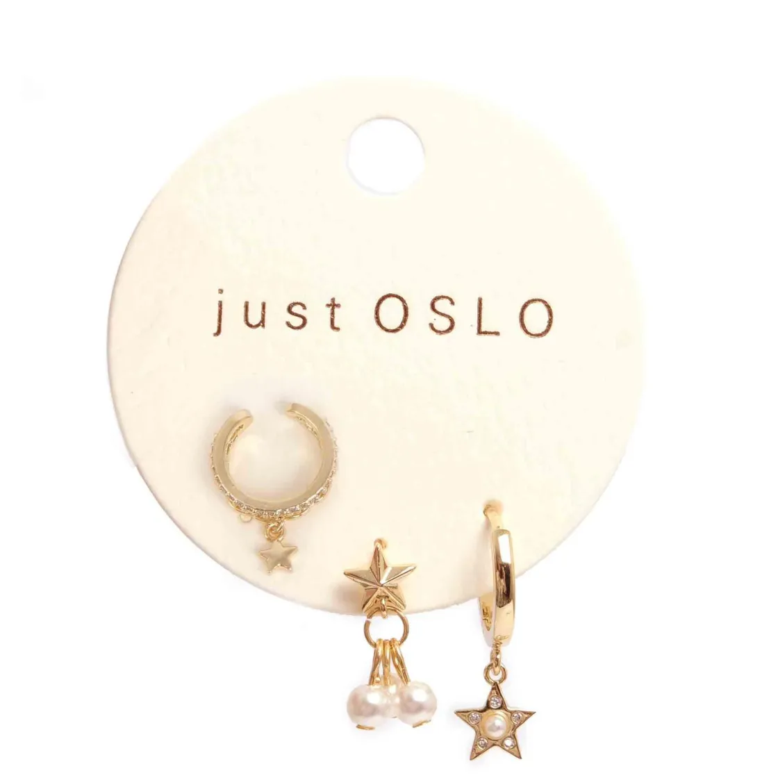 Lag en lite stjernehimmel på øret med denne nydelige trioen av bittesmå gullbelagte stjerner og perler.