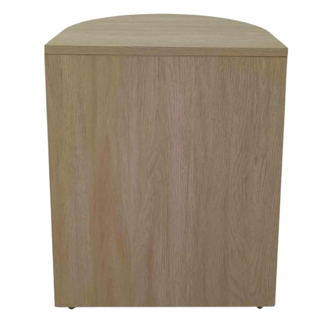 Et sidebord som utnytter plassen effektivt. Hyllen gir et praktisk sted for bøker, planter eller små ting som trenger et sted å bo. Laget med en lys eik look som gir en naturlig finish som lett passer inn i stuen, soverommet eller gangen. Skaper en lun følelse og hjelper med å holde orden.