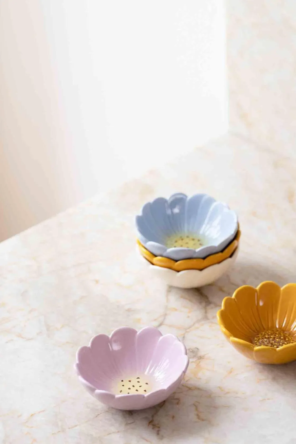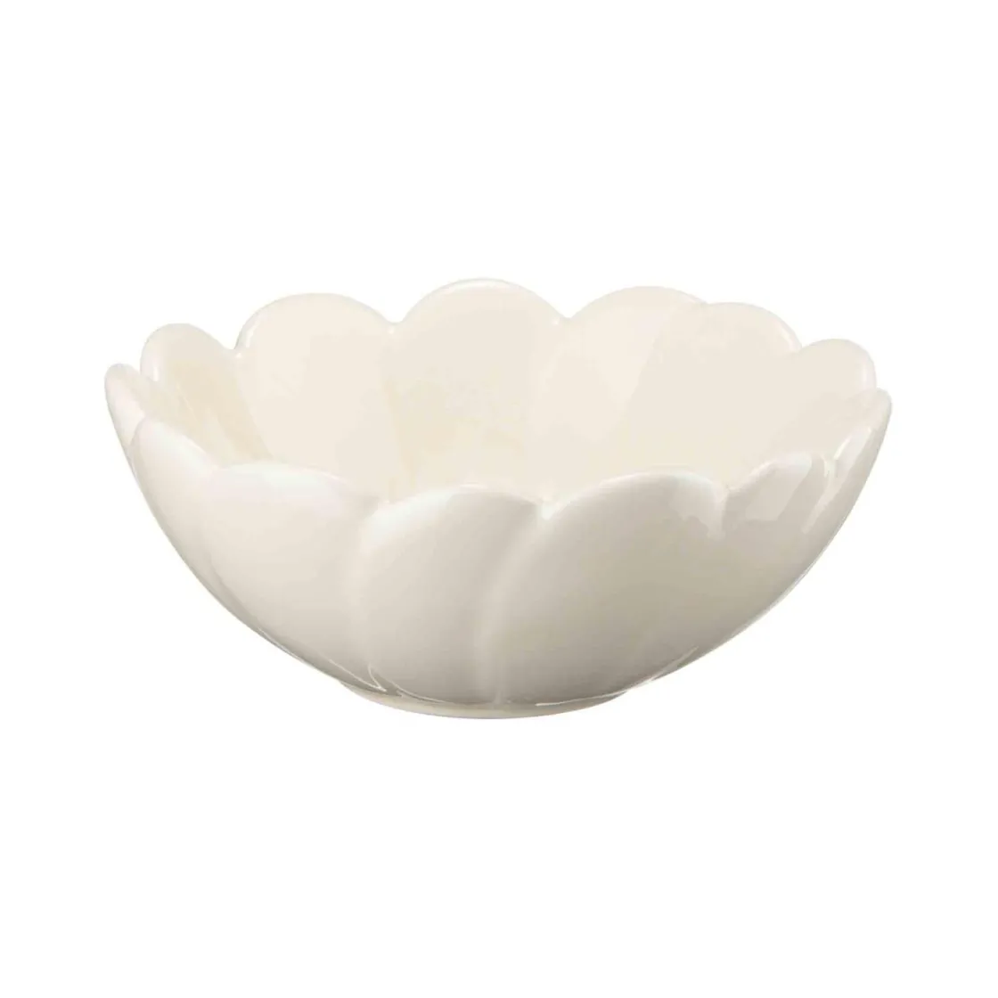Nydelig liten hvit skål formet som en blomst. Dekorativ i seg selv eller bruk den til f.eks sukker, krydder eller oljer.