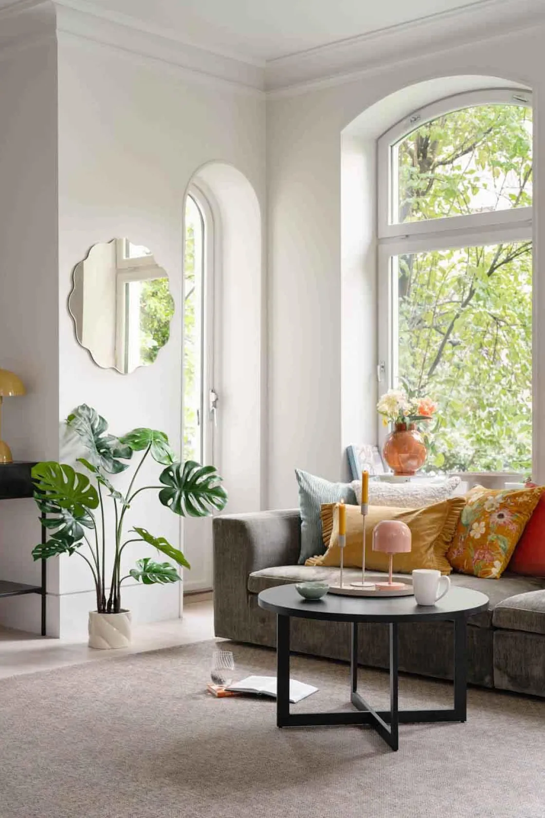 Et rundt speil med bølgete kanter som gir et lekent preg til rommet. Perfekt for å skape en lun stemning i gangen, soverommet eller stuen. Kombiner med en vegghylle eller noen fine bilderammer for å gi veggen et komplett uttrykk. Et speil som både reflekterer lys og personlighet, og som passer like godt alene som i en liten bildevegg.