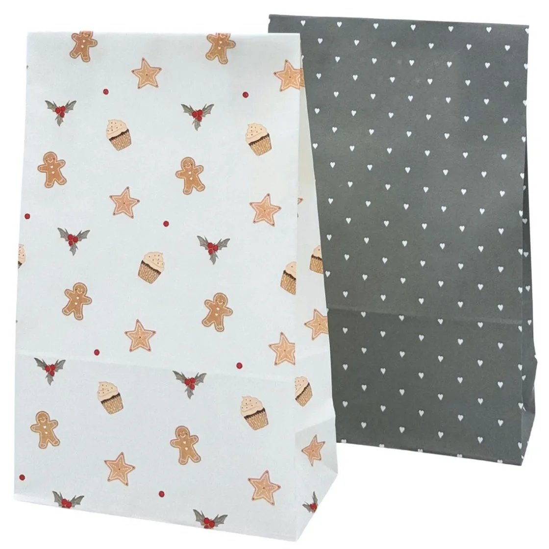 24-pk adventsposer med søte julemotiver og hjerter – ideelle til å lage en personlig julekalender. En enkel og koselig måte å telle ned til jul på.