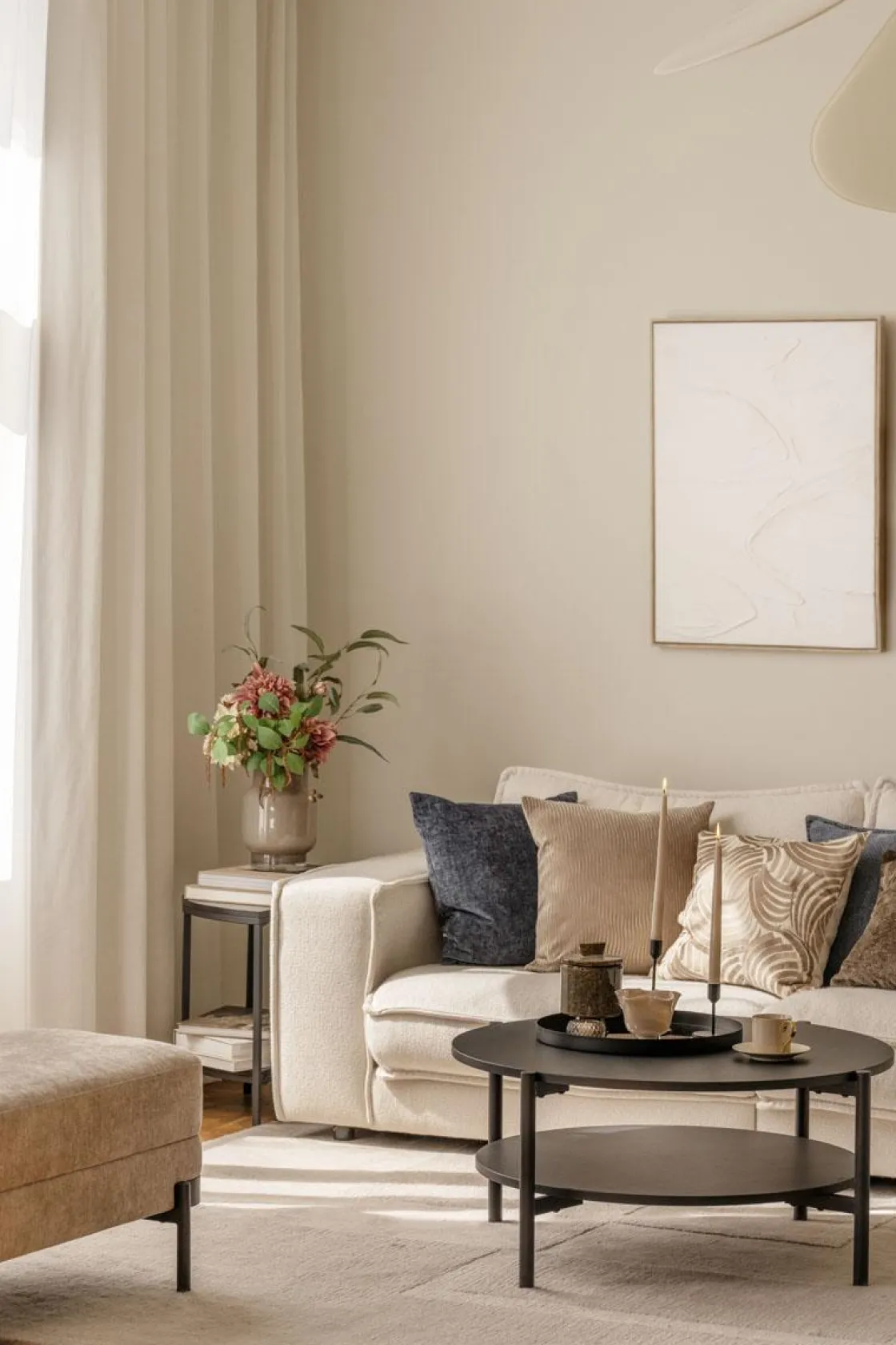 Veggbildet med struktur i hvitt gir veggen et rolig og samtidig levende uttrykk. Det nøytrale uttrykket gjør det enkelt å kombinere med annet interiør.