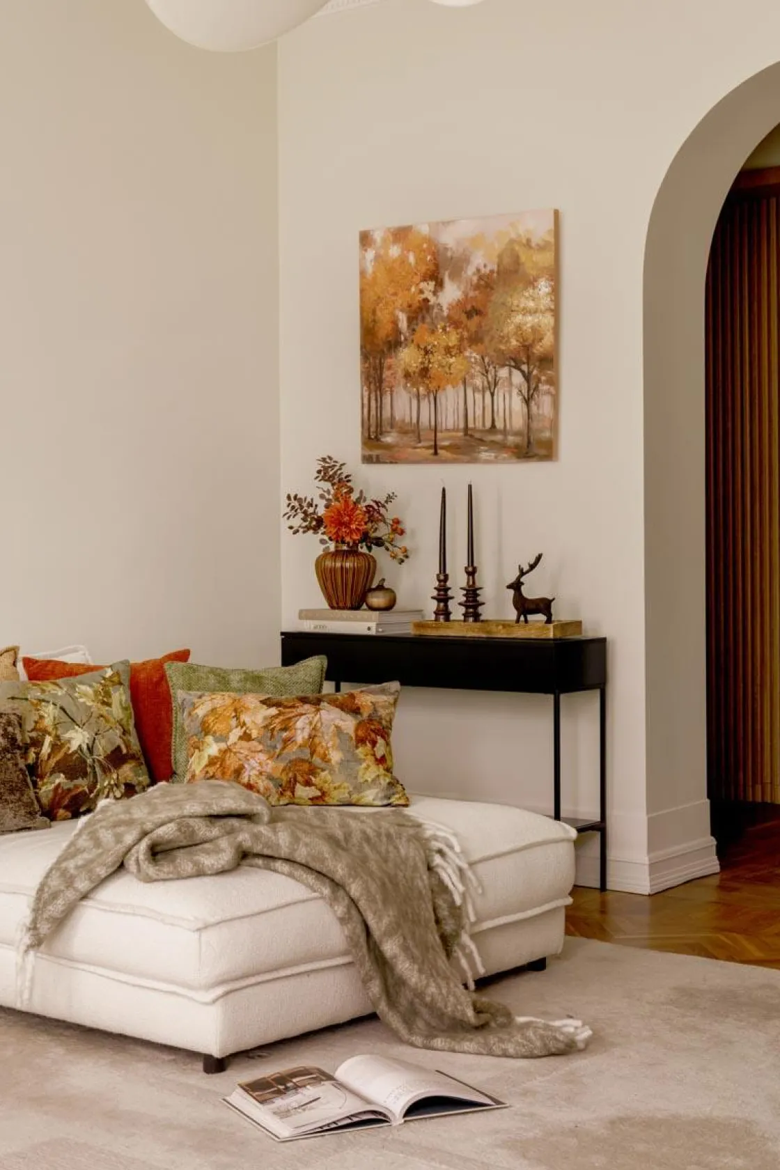Bildet har en lun fargepalett som gjør det enkelt å kombinere med både mørke møbler og lyse tekstiler. Over en skjenk eller på en tom vegg i stua, gir det et hint av natur uten å ta for mye plass. For en helhetlig stemning kan du henge det sammen med eller andre .
