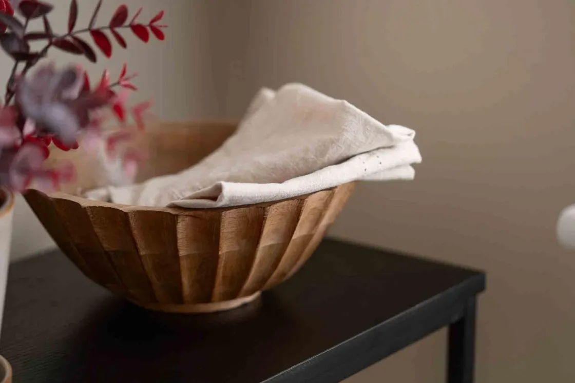 Nydelig dekorbolle i mangotre. Passer perfekt som fruktkurv, og gjør seg godt på kjøkkenbenken eller på bordet.