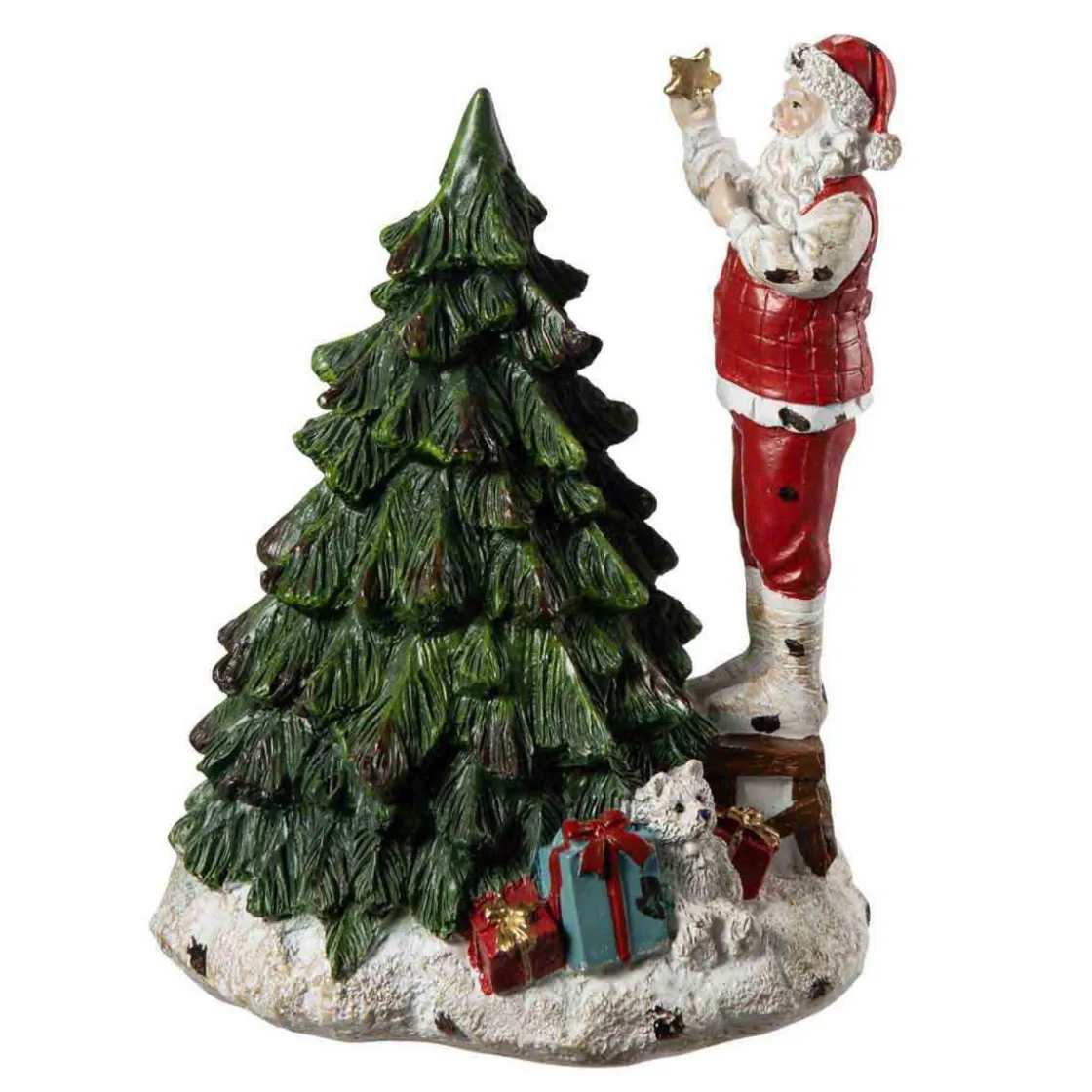 Dette fine dekortreet med julenisse gir en tradisjonell følelse av jul. Dekorfiguren av en julenisse som pynter treet, vil legge til en leken og festlig stemning til din juleinnredning.
