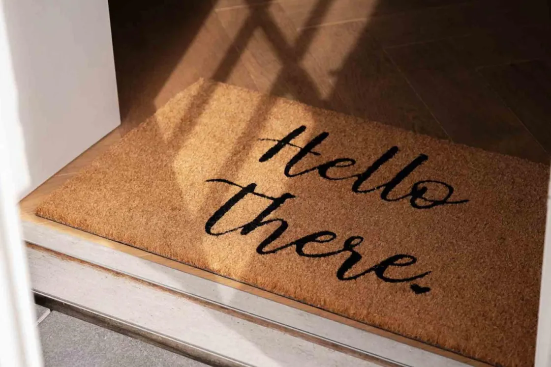 Et lite “Hello there” gjør det straks litt hyggeligere å komme på besøk – eller hjem til seg selv. Dørmatten har gummibakside som holder seg godt på plass. Passer både utenfor inngangsdøren og på innsiden, om du foretrekker det.