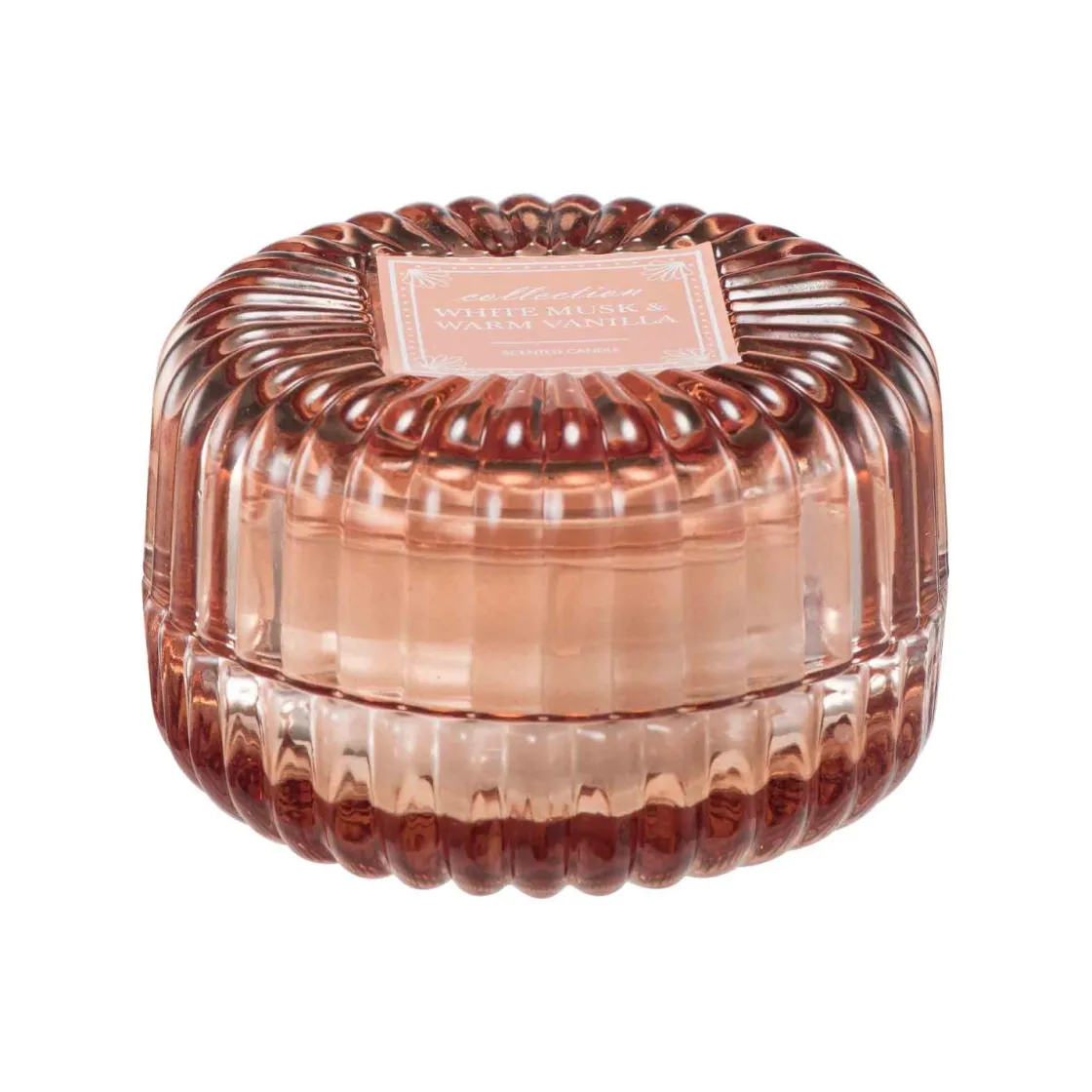 En harmonisk duft av white musk og varm vanilje sprer seg i rommet. Det ferksen glasset gir en rolig stemning, enten det står på badet eller i stua. Når lyset er brent opp, blir krukken en fin oppbevaringsboks. Passer perfekt med andre duftlys eller myke tekstiler. En fin gave eller en liten luksus til deg selv.