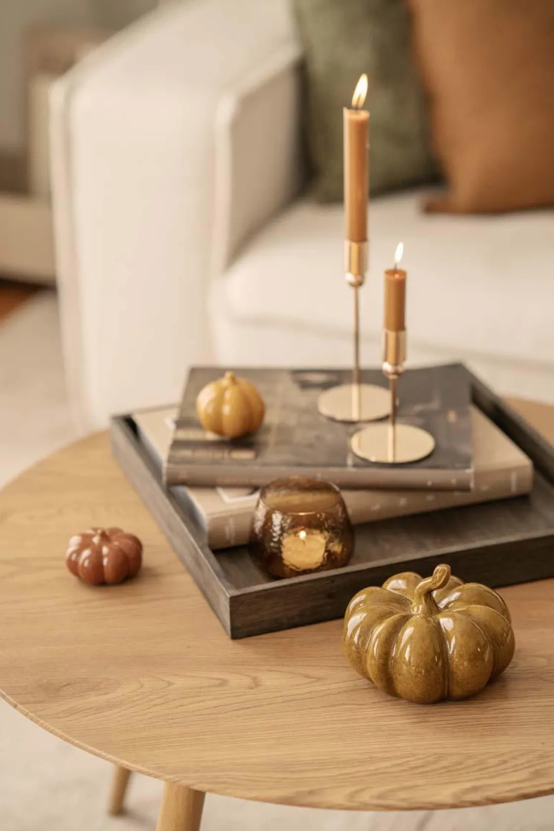 Sett tonen for en varm og innbydende høstsesong med denne sjarmerende gresskarfiguren i keramikk. Med sitt søte og sjarmerende uttrykk vil den legge til en koselig atmosfære på bordet, hyllen eller vinduskarmen. Sjekk ut resten av for å skape en helhetlig look.