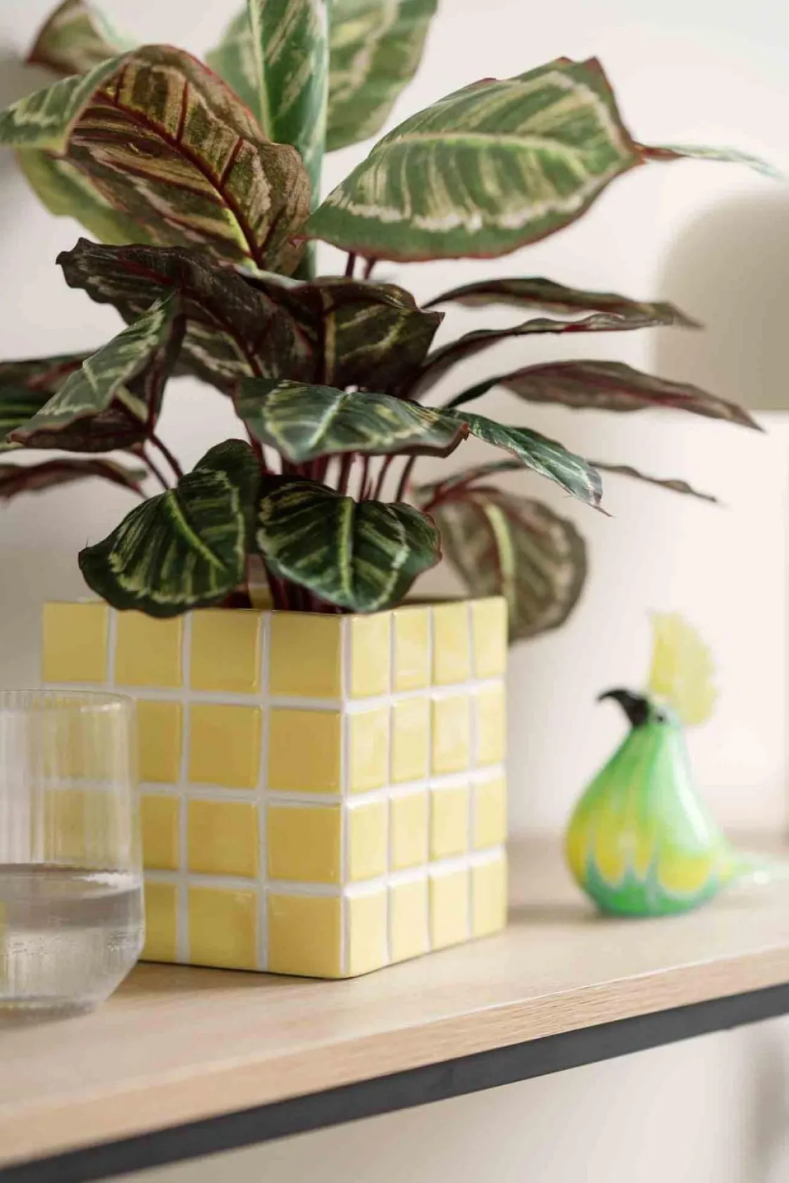 Fargerik og dekorativ glassfigur formet som en fugl. Står fint alene, men bruk den gjerne som en del av en oppsetning med lys og blomster på et .
