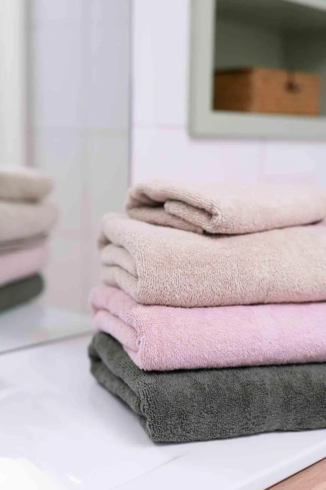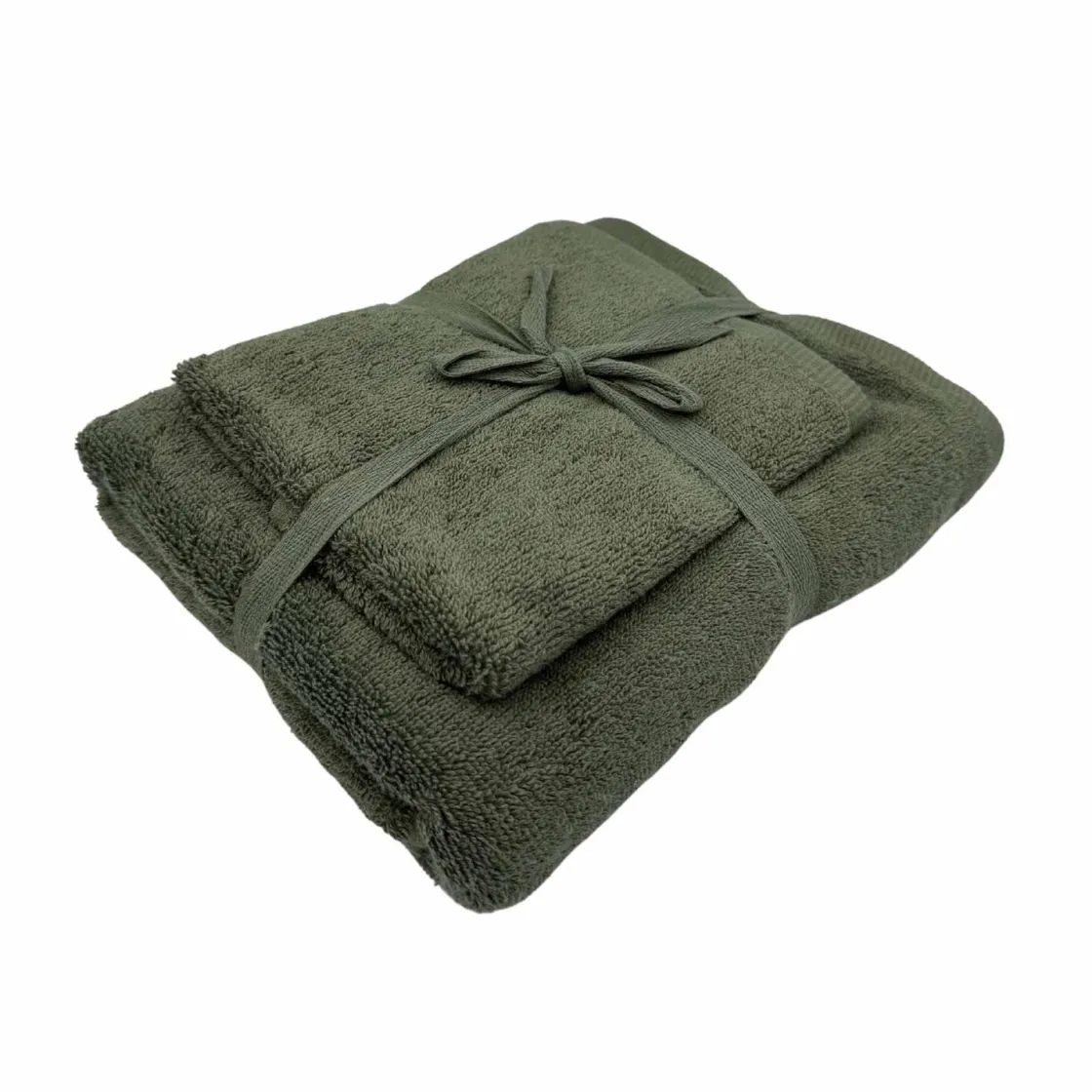 Dette settet består av to myke håndklær i en nydelig grønn farge. Settet består av et håndhåndkle og et dusjhåndkle. Perfekt til badet eller gjestetoalettet.