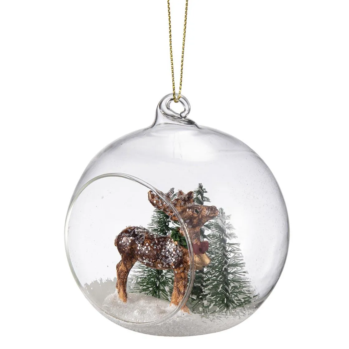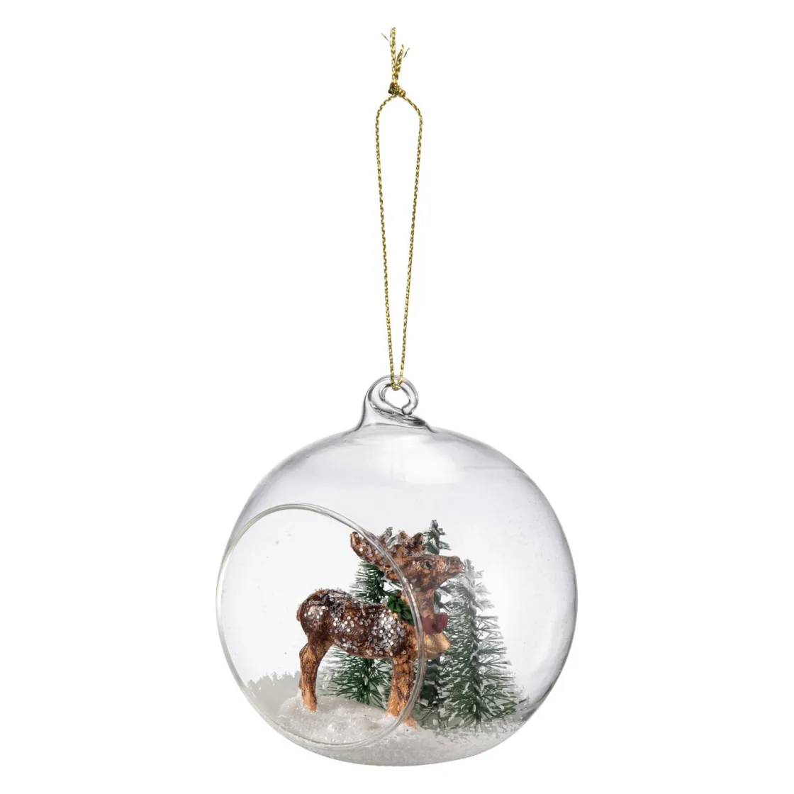 Gjør en personlig vri i julepyntingen og pynt juletreet ditt med denne søte glassjulekulen med reinsdyr og trær. Den er leken, men gjør seg samtidig så godt på treet eller som bordpynt!