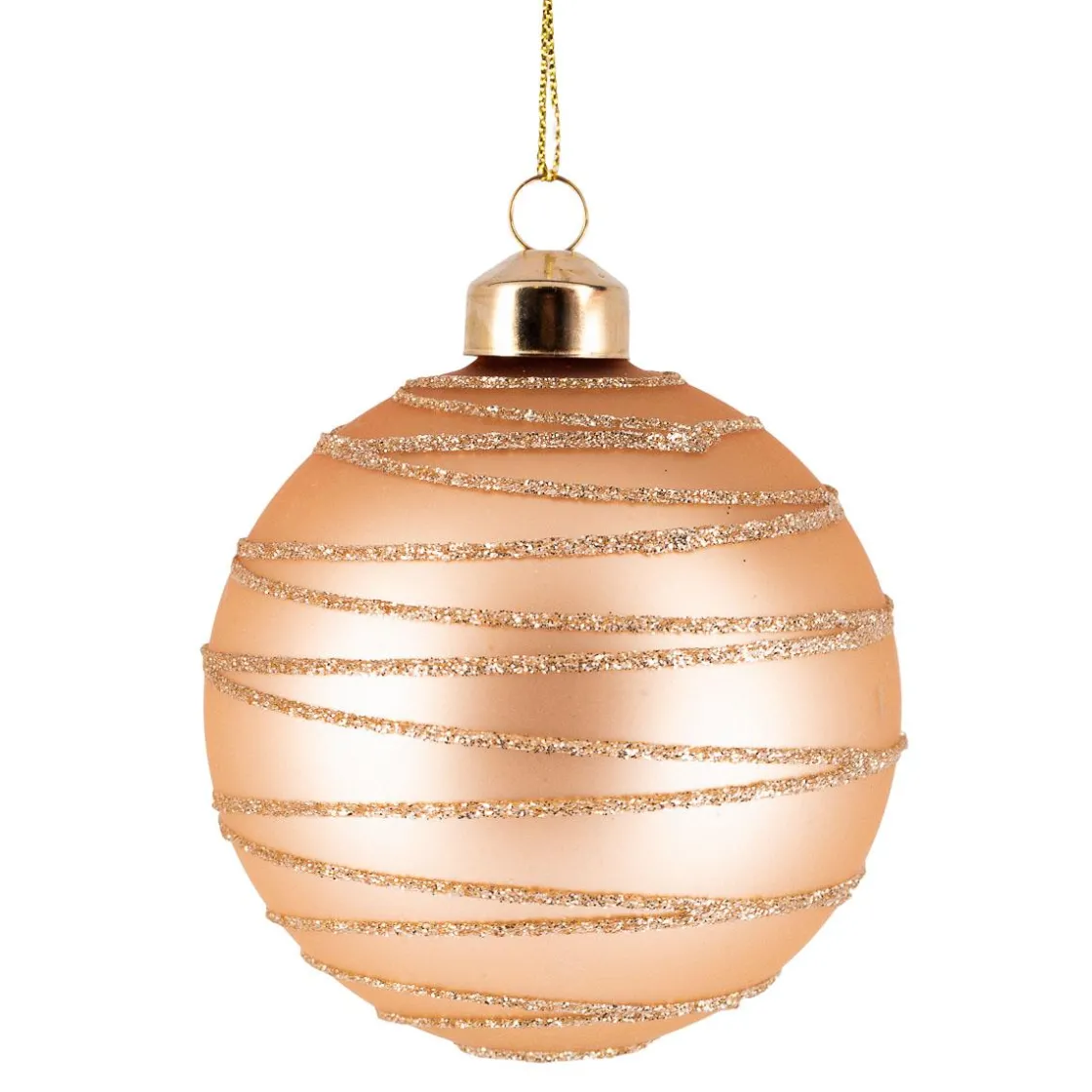 Nydelig julekule i gullfarget glass med lekker tvist av gullfarget glitter. Så utrolig flott mot det grønne juletreet. Kombiner gjerne med andre julekuler i farger som grønt eller rødt, og ikke vær redd for å blande inn ulike former.