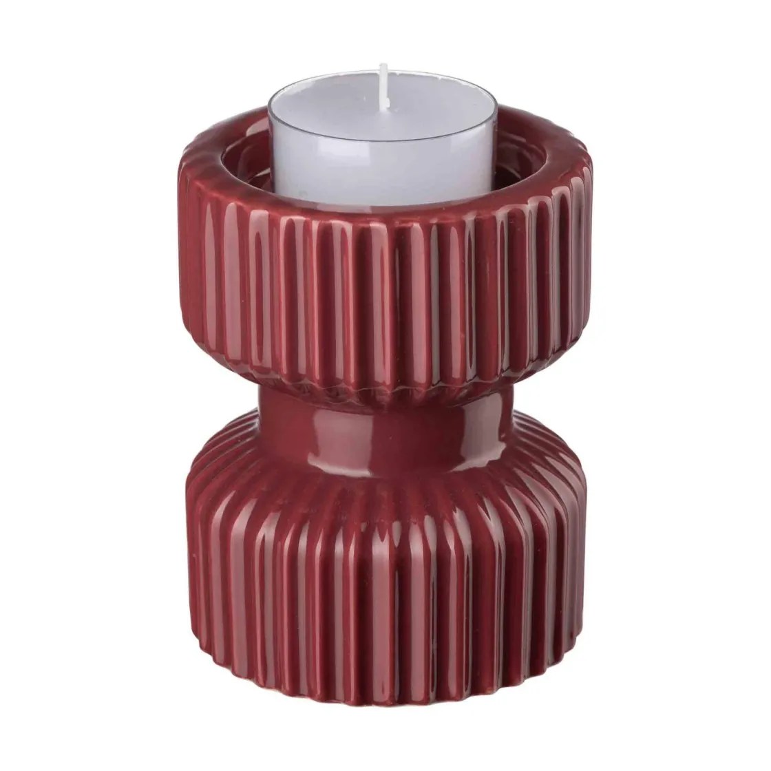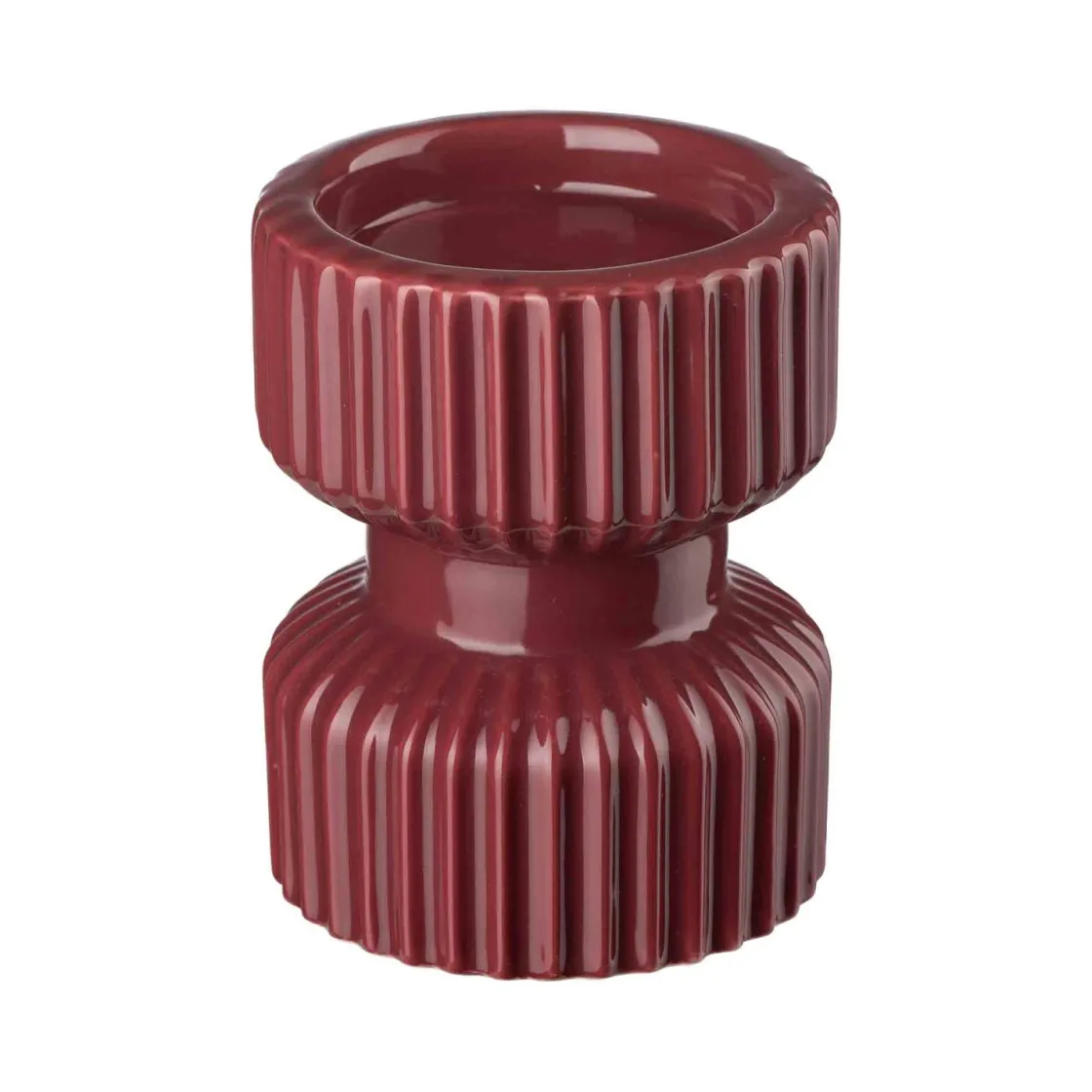 Vår kubbelysestake i keramikk i burgunder tilfører en dyp og varm fargetone til enhver innredning. Det enkle, men elegante designet gjør den til et perfekt tillegg til både moderne og klassiske interiører. Lysestaken er solid og holdbar, ideell for å holde kubbelys trygt på plass.
