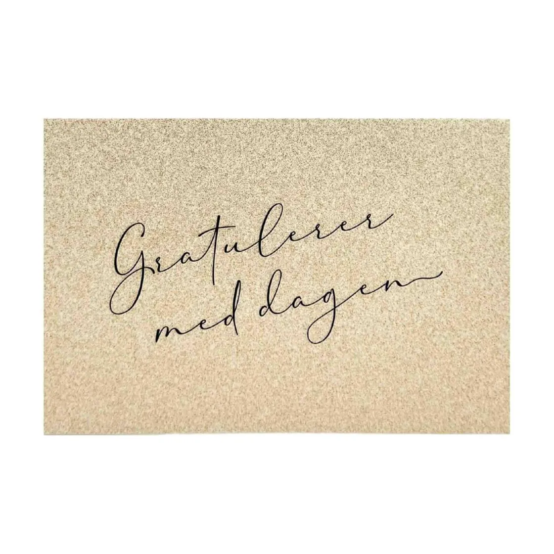 Hva er vel bedre enn å feire en spesiell dag med et vakkert kort? Kortet har en glitrende gyllen bakgrunn og en håndskrevet tekst som gir en personlig touch til gratulasjonen.