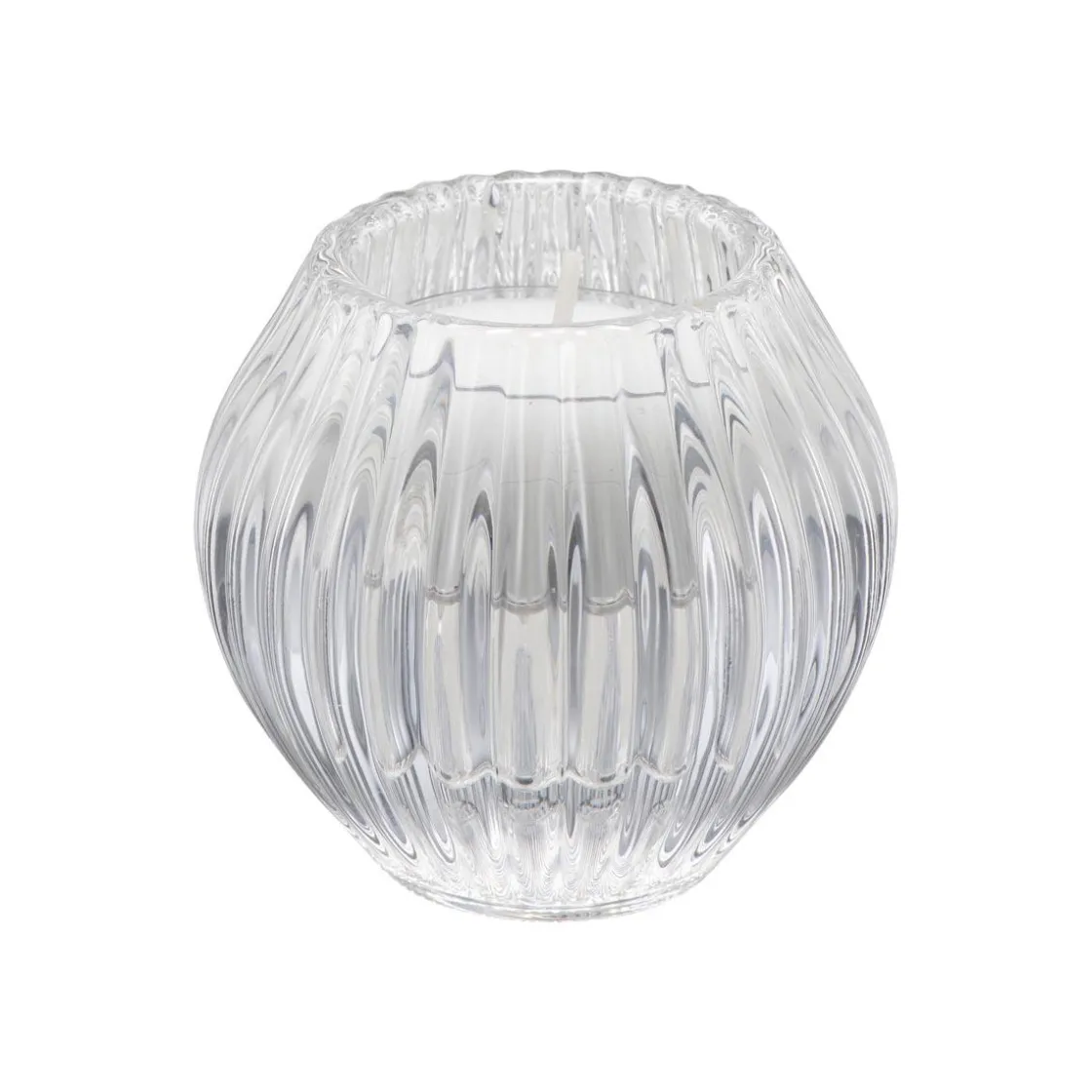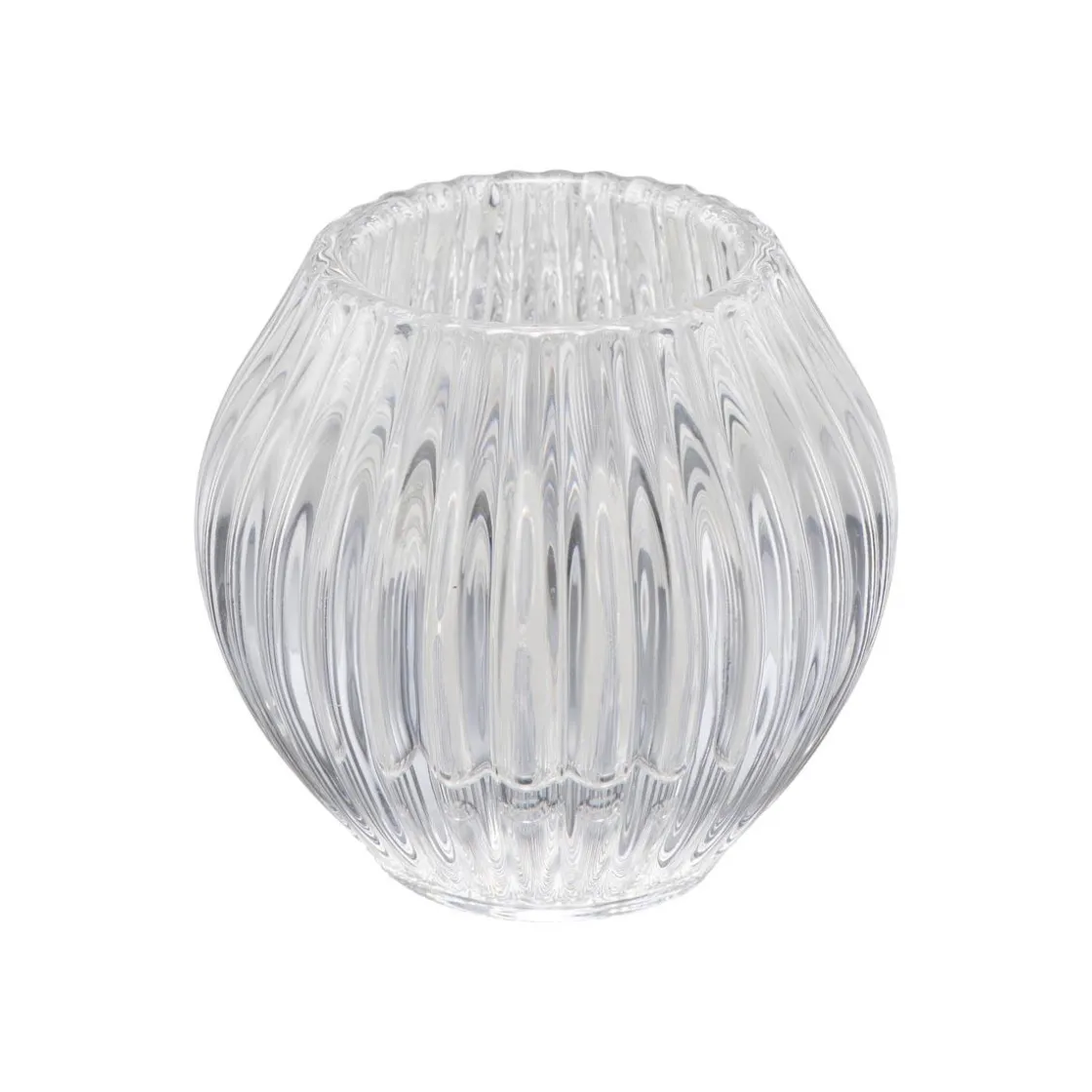 Denne kombi lysestaken gir deg to i én – telys i den ene enden, kronelys i den andre. Den buede formen og de rillede sidene gir et mykt spill i glasset, spesielt når lyset tennes. Glasset er klart og solid, og passer like fint alene som i en gruppe med flere. Bytt mellom telys og kronelys etter humør og anledning, eller miks ulike høyder for mer liv på bordet eller samle på et .