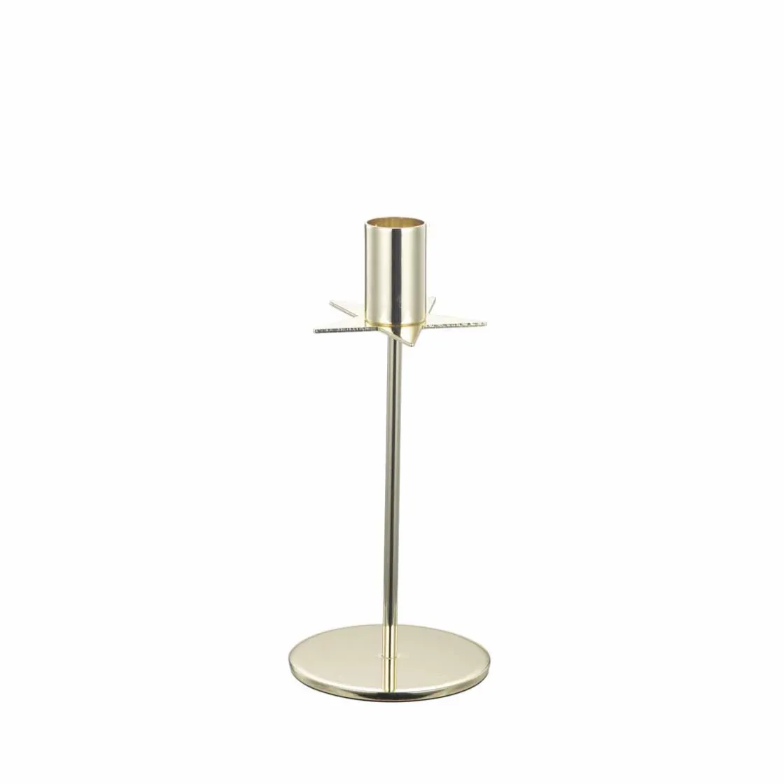 En elegant lysestake formet som en stjerne i gull som sprer varme og glød. Perfekt til å skape et festlig og sofistikert preg i hjemmet. Kommer også i en