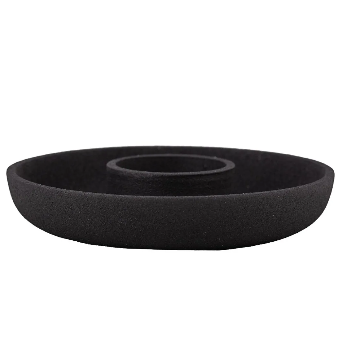Stilig telysholder i sort metall, røff og ru overflate som gjør seg like god i hyllen som på sofabordet. Plasser på og gjør klart til julepynten som skal frem. Passer perfekt med i samme serie!