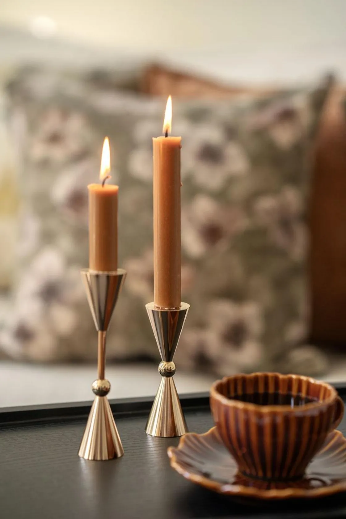 En flott lysestake med blank overflate og tydelig form. Høyden gir et elegant løft, mens formen gir den karakter. Flott alene, men enda bedre sammen med i en mindre størrelse. Passer både på middagsbordet og på en kommode med andre blanke detaljer.