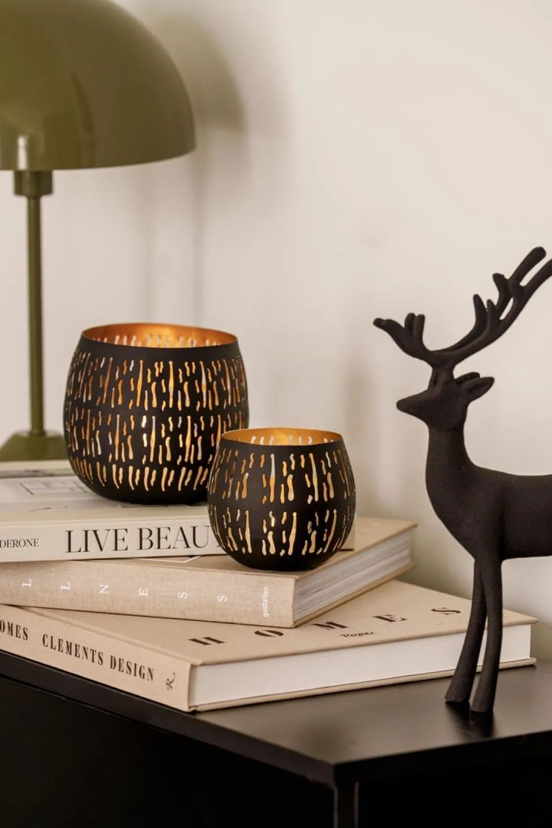 Lyslykten sprer et varmt og koselig skinn gjennom små, uregelmessige utskjæringer. Den avrundede formen gir den et mykt uttrykk som passer like fint i en vinduskarm som på et brett på stuebordet. Sammen med den blir det ekstra hyggelig når mørket senker seg.