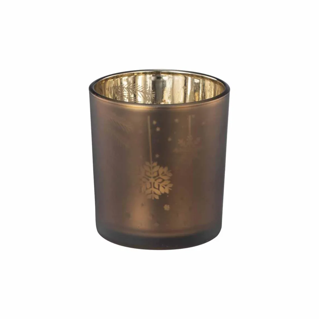 En stemningsfull lyslykt i brun glass med utskårne snøstjerner. Når lyset tennes, skaper den et varmt og koselig skinn som sprer ekte vinterhygge.