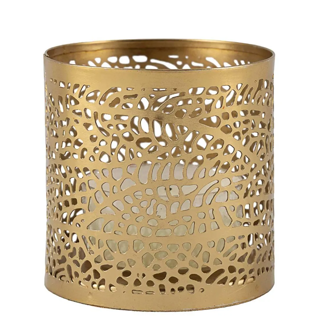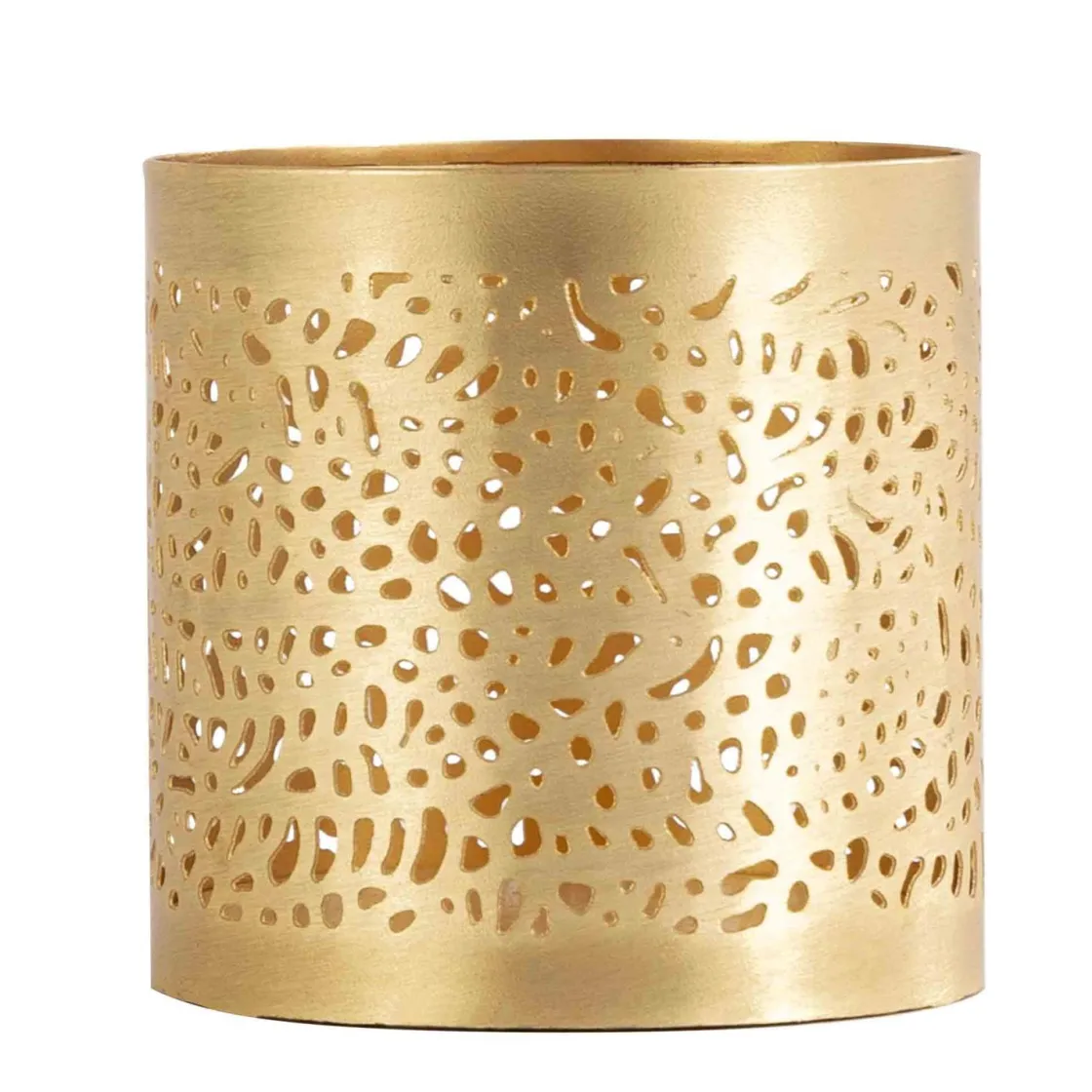 Lekker telysholder i børstet gull med mønster som er nydelig når lyset brenner!