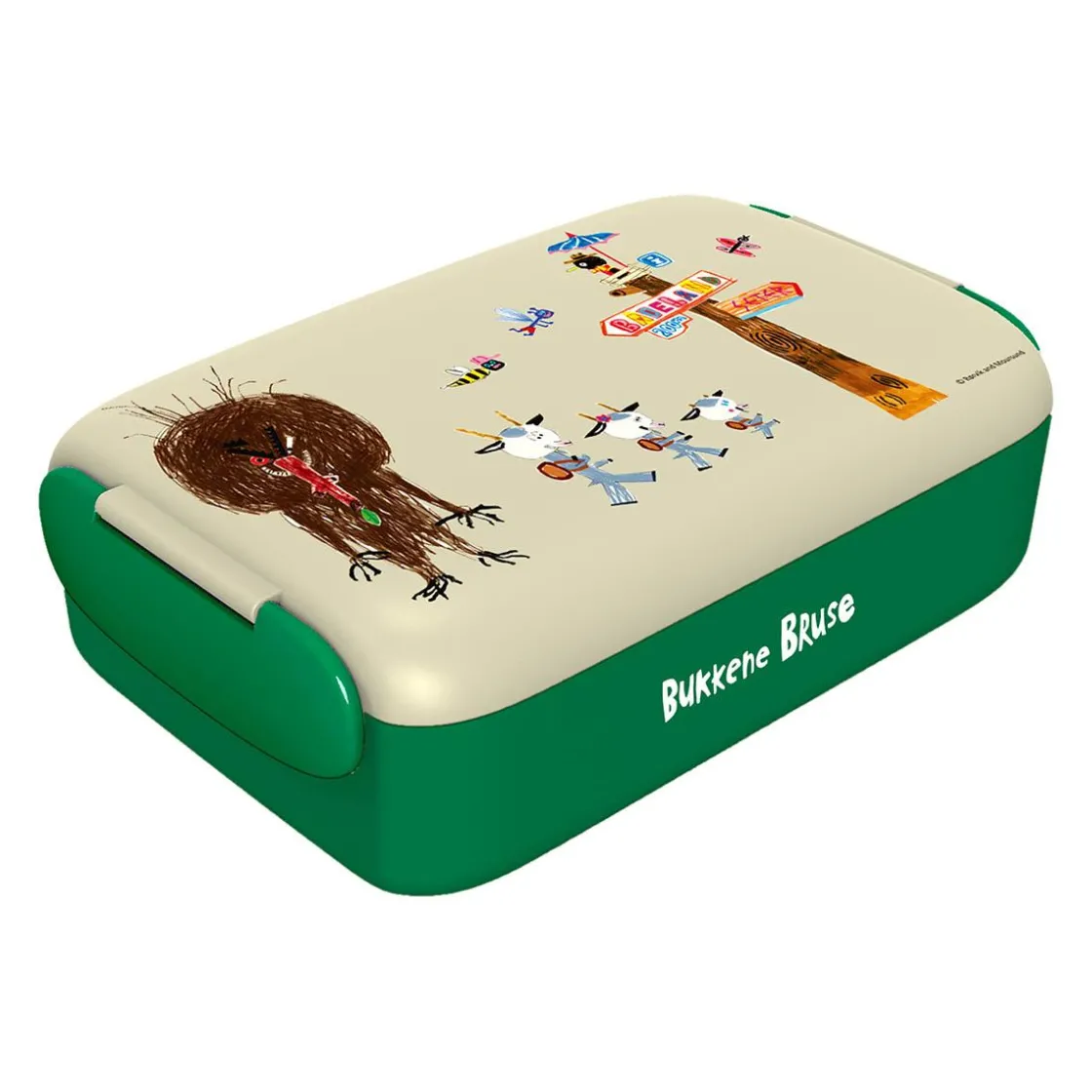 Bukkene Bruse lunsjboks fra Modern House, med en kapasitet på 0,6 liter, i en fin grønn farge. Denne boksen har livlige farger og et lekent design fra filmen «Bukkene Bruse drar til badeland». Laget av PP-materiale, er den utstyrt med inndelinger for enkel organisering av maten.