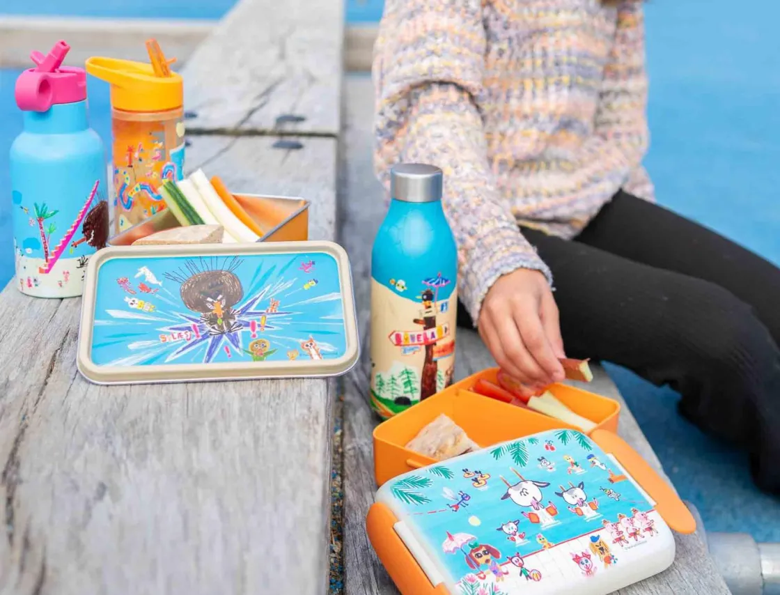 Bukkene Bruse lunsjboks i størrelsen 0,8 liter, med en fargerik tegneseriemotiv i oransje og beige. Denne lunsjboksen fra Modern House er inspirert av filmen «Bukkene Bruse drar til badeland» og har en morsom design som vil glede både små og store. Den er laget av PP-materiale og kommer med praktiske inndelinger for å holde maten organisert.