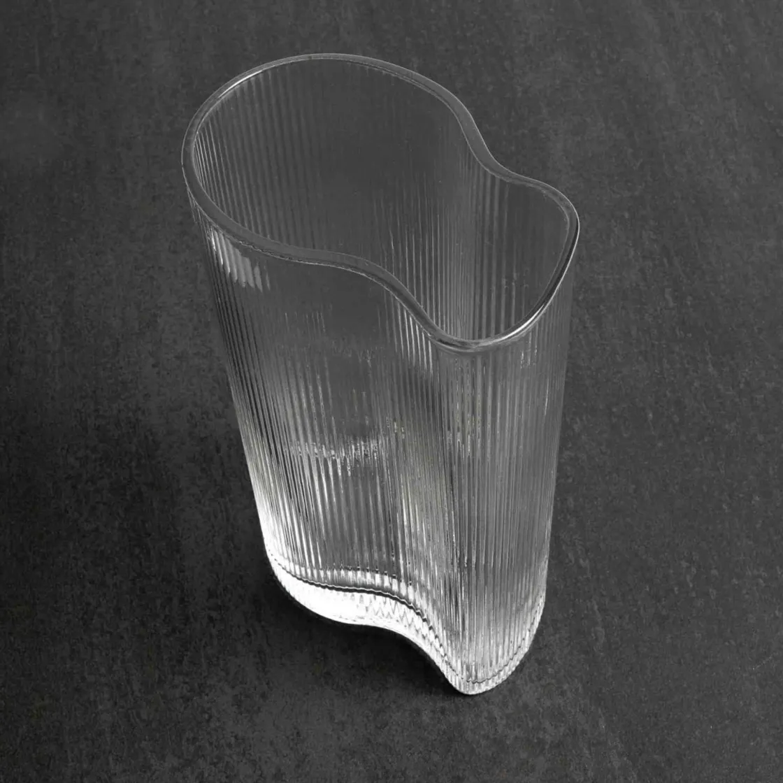 Karaffel fra MUUBS, munnblåst for et unikt preg. Glassene har en vakker kruset overflate og en leken form som gir et moderne touch til borddekkingen. Oppvaskmaskinsikre for enkel rengjøring etter gjester.