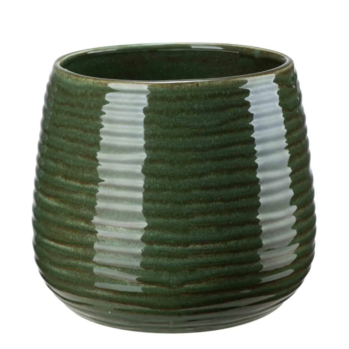 En potte som gir plantene et nytt hjem med tekstur og dybde. Det stripepregede mønsteret og den dype grønne fargen gjør den enkel å kombinere med andre keramikkpotter eller naturmaterialer. Perfekt til små grønne planter, men kommer også i en større størrelse for planter som trenger litt mer plass.