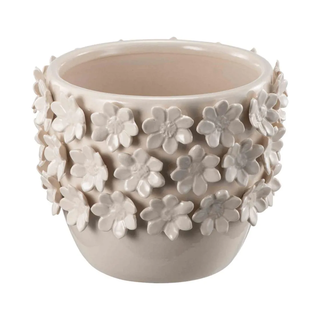 Denne potten gir et lett og blomstrende preg til ethvert rom. Med små blomster som dekker hele potten, har den en fin balanse mellom eleganse og lekenhet. Perfekt for en liten plante som trenger litt ekstra oppmerksomhet.