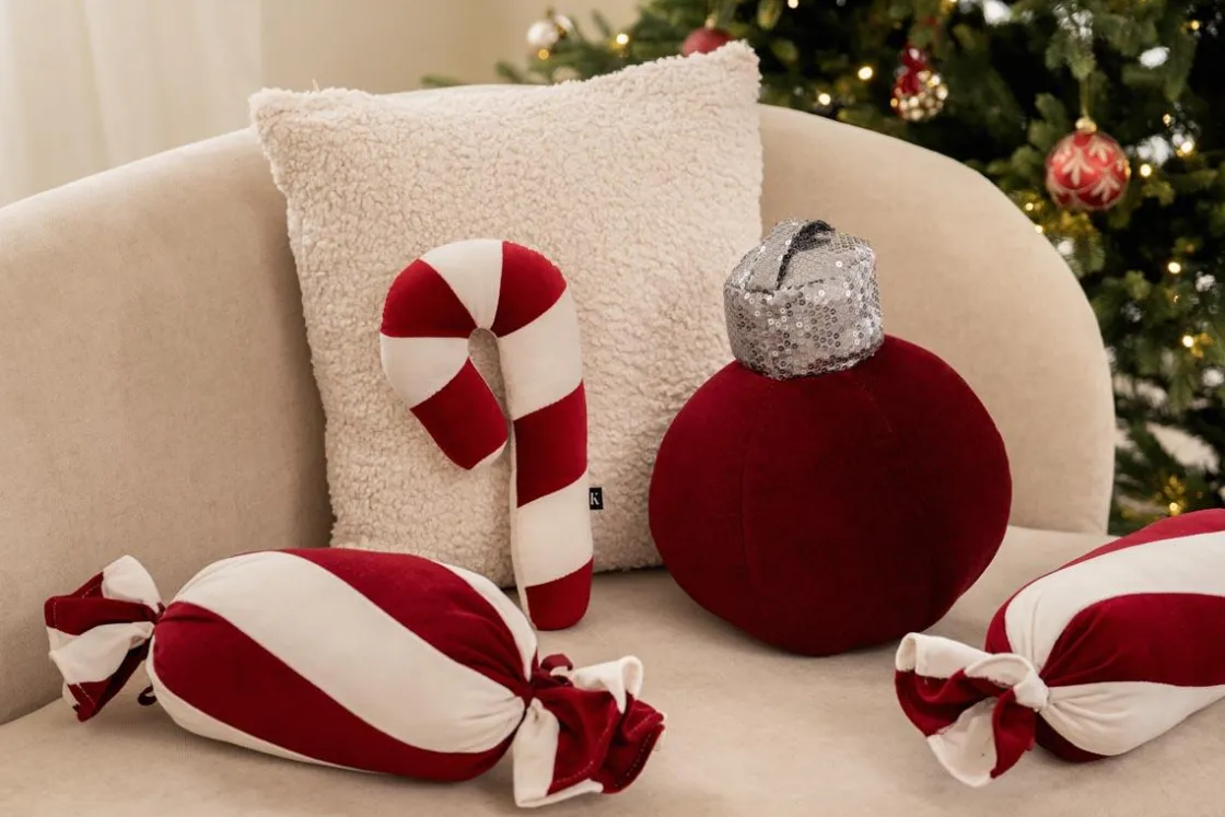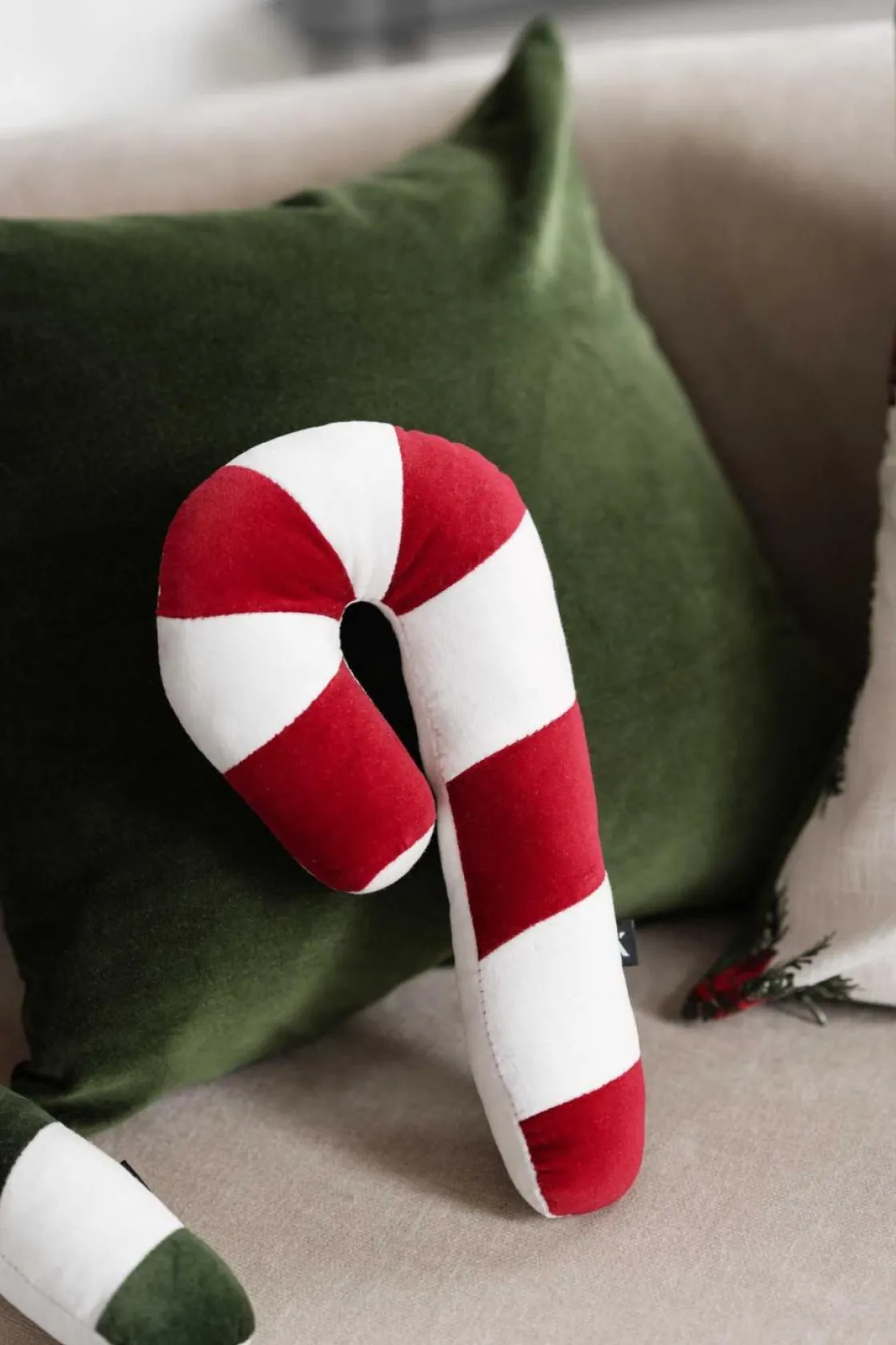 Pute formet som en godteristang i rødt og hvit. Denne puten gir et festlig innslag i sofaen eller hvor du måtte ønske å plassere den. Perfekt å kombinere med andre puter for å skape en unik og fargerik atmosfære. Se hele vårt utvalg av puter og finn dine favoritter for en komplett dekorasjon.