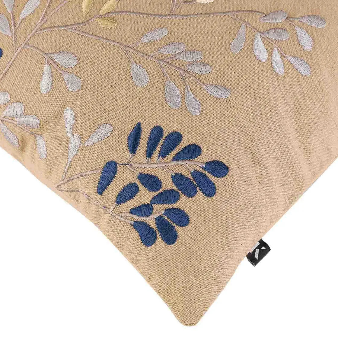 Putetrekket bringer naturens detaljer inn i stuen med et brodert mønster i blå og nøytrale toner. Den lune fargen skaper en rolig base, mens de delikate grenene gir en følelse av liv. Perfekt alene i en stol eller som del av en sofagruppe. Kombiner med myke velurputer i blått eller beige for et harmonisk uttrykk, eller legg til en strukturert for ekstra dybde.