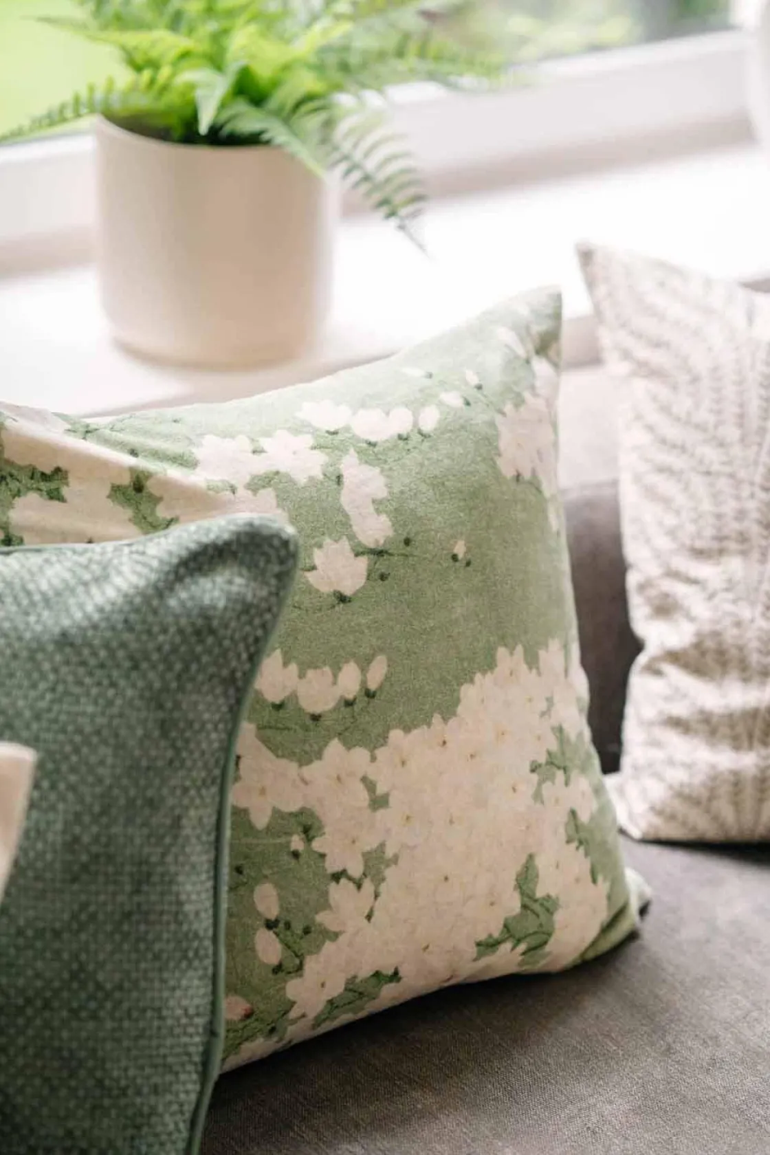 Et putetrekk som bringer naturen inn med sitt blomstrende mønster i hvitt og grønt. Skaper en rolig og harmonisk atmosfære i stuen eller soverommet. Kombiner med i ensfargede toner som beige, grønt eller hvitt for et elegant uttrykk, eller miks med florale mønstre for en leken kontrast. Perfekt sammen med et strukturerte puter eller et mykt for en helhetlig stil.