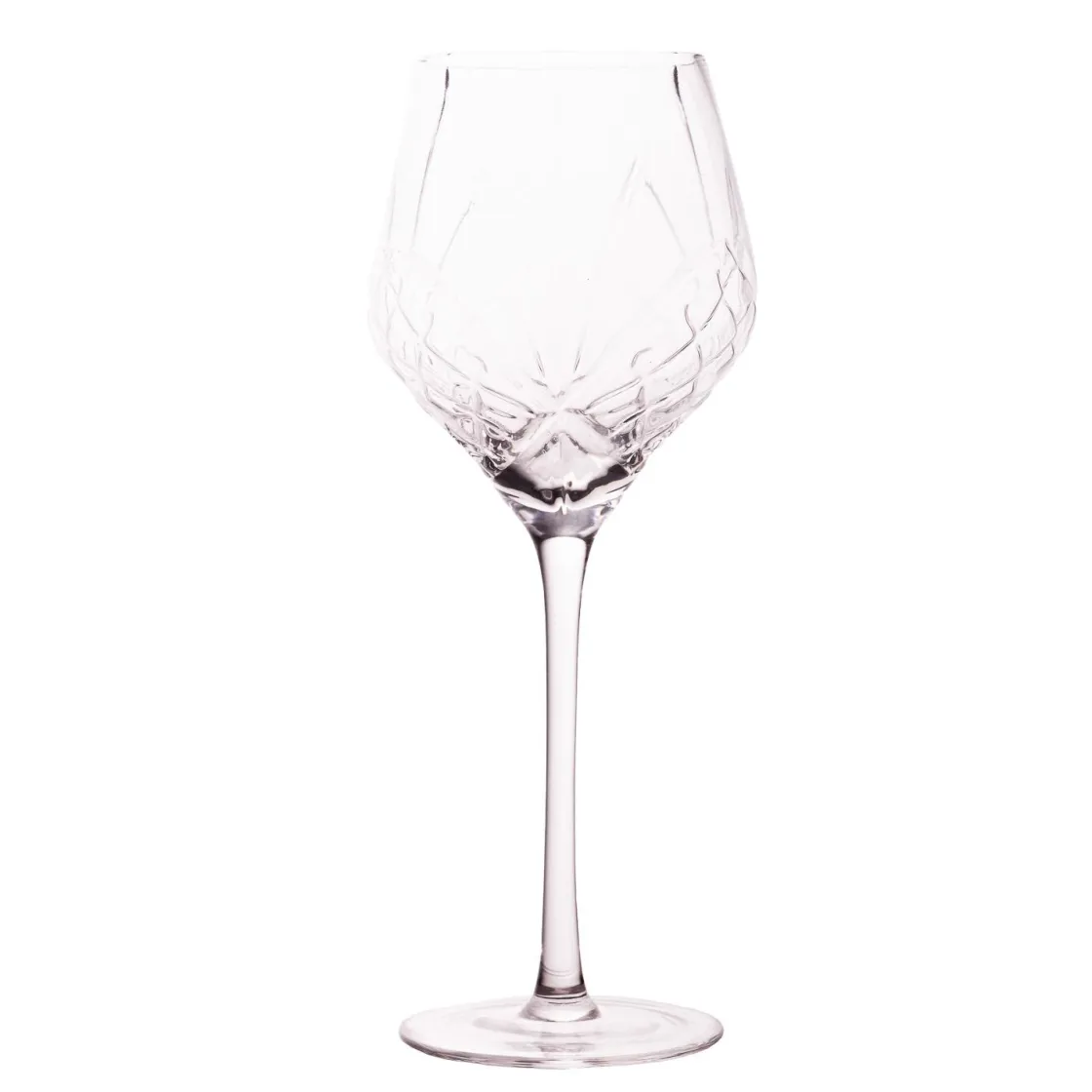 Dette er et dekorativt rødvinsglass hvor mønsteret gjør at glasset får et tidløst preg over seg og passer inn i ethvert hjem. Se hele utvalget vårt i .