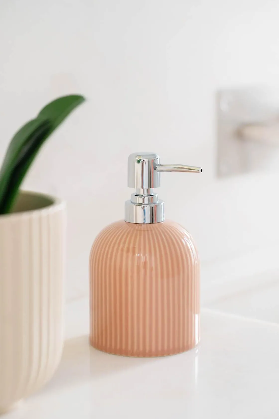 Såpedispenseren med sitt elegante stripemønster og varme nyanser gir baderommet en oppdatert følelse. Pumpen skaper en sofistikert kontrast, samtidig som den er praktisk i bruk. Kombiner den med matchende tannbørsteholder og andre baderomstilbehør i samme serie for et harmonisk uttrykk. Perfekt for både flytende såpe og håndkrem.
