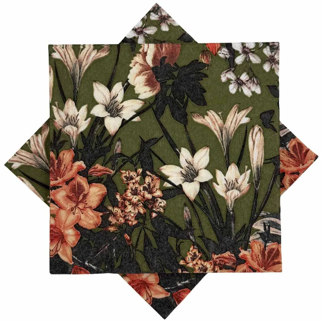 Stemningsfull grønn serviett med varme høstfarger og blomsterdesign, perfekt for koselige sammenkomster gjennom sesongen! Mix og match våre servietter! Sjekk ut hele utvalget