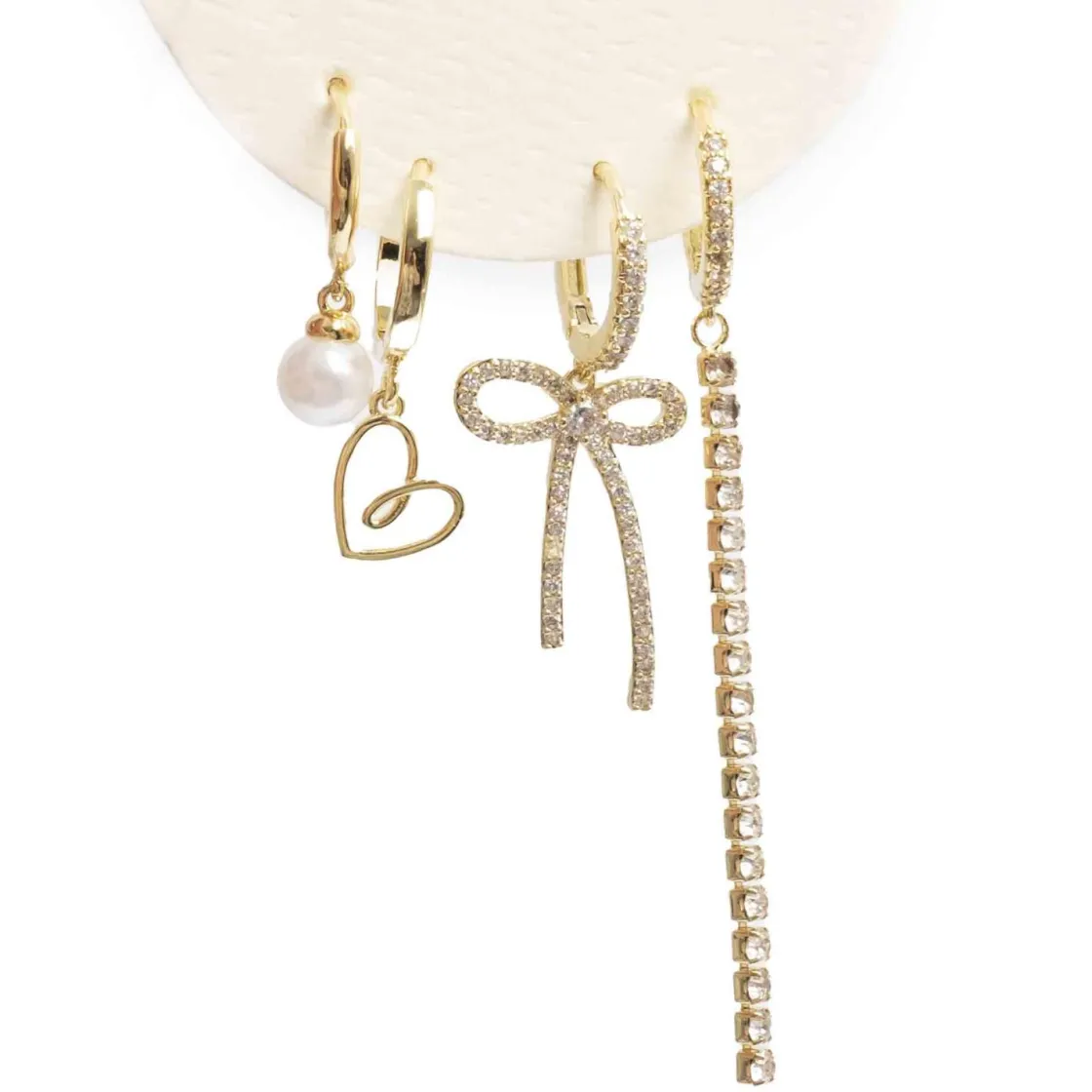 Klassikere i kul, trendy kombinasjon! Sett med 4 ørepynt som er kjempetøffe sammen hvis du har flere hull. Belagt med gull.